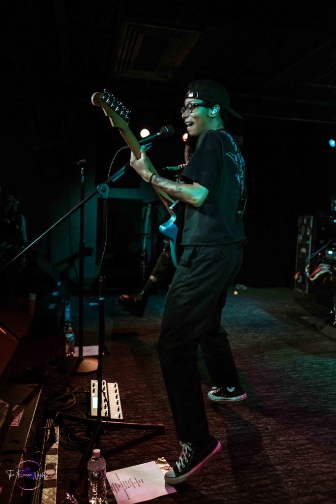 Hailing from Albany is New York Young Culture. A three-piece pop group consisting of guitarists Gabe Pietrafesa and Troy Burchett, and vocalist Alex Magnan. They took the stage in the sold out Rebel Lounge on Saturday night to crowd that was buzzing with anticipation. The trio kicked off their impressive 10 song set with Not In Love, a song off their 2022 release You Had To Be There. Not In Love is a groovy departure from the bands other releases. The song is reminiscent of British pop rock band, The 1975. They switched gears for a few songs to play Drift, a single from their 2019 album (This is) Heaven, several tracks off their self-titled 2020 record, and Shiver, a song from their EP titled Godspeed. They closed their set with several more tracks off You Had To Be There. The set felt fresh and energetic. With songs representing all eras of their career. They are definitely ones to watch in the pop punk scene, keep your eyes on these three.