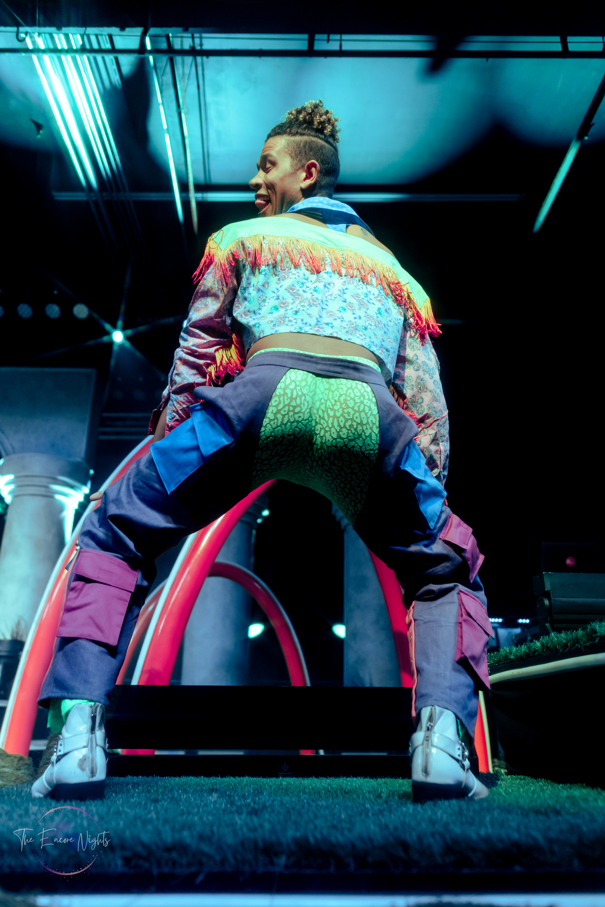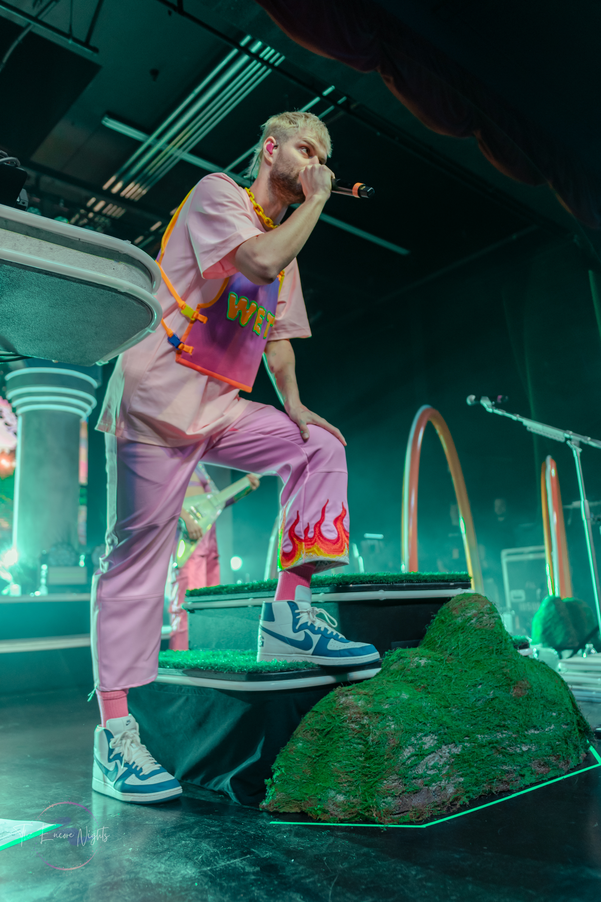 Bob’s Dance Shop came next to stage. I don’t know exactly what I was expecting, but it wasn’t what I saw…and I loved it. Maybe other people could gather this from the name, but Bob’s Dance Shop is just that, a dance shop. The four person crew got their start during the pandemic, gaining fame on tik tok with their dynamic and dramatic virtual dance classes. They took the stage in neon outfits and performed a three song, energetic set of twerking and body rolling.