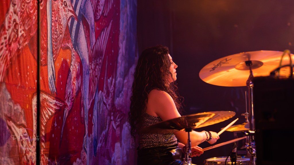 As the crowd eagerly awaited Covet’s performance, the atmosphere was electric. The band, led by guitar virtuoso Yvette Young, immediately seized the audience’s attention with their mesmerizing instrumental compositions. As they opened with “Coronal” the interplay between Young’s intricate guitar work, David Adamiak’s grooving basslines, and Forrest Rice’s dynamic drumming was nothing short of awe-inspiring.