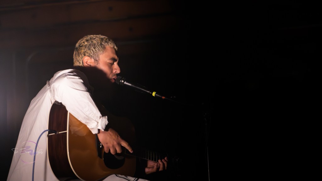 Following suit, Scarypoolparty set the tone with his soulful and emotive performance. Lit only by a single light bulb on stage, Alejandro Aranda showcased his incredible vocal range and guitar skills, captivating the audience with heartfelt melodies and introspective lyrics. The energy in the room soared as Scarypoolparty engaged the crowd, leaving a lasting impression on everyone present.