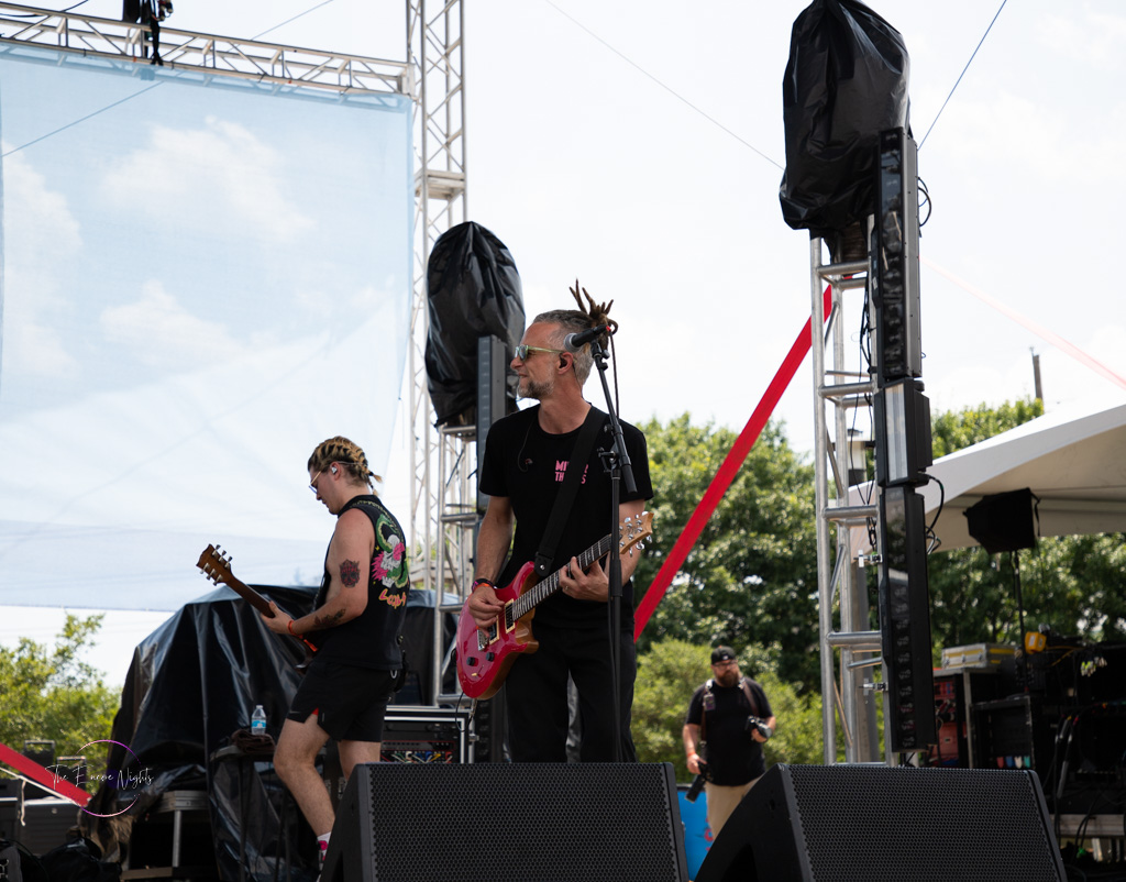 First to take the Texas heat and stage was Van Full of Nuns who are a pop punk band based in Dallas. They have been taking over the pop punk scene since 2019. They sang fan favorite covers of bands like My Chemical Romance’s “I’m not okay (I promise)” and “Black Parade”, Papa Roach’s “Last Resort” . In between songs, they reminded the crowd to stay hydrated. They also played an original song “Love to hate me” followed by their cover of “I miss you” by Blink 182, throughout their set the crowd sang and danced along.