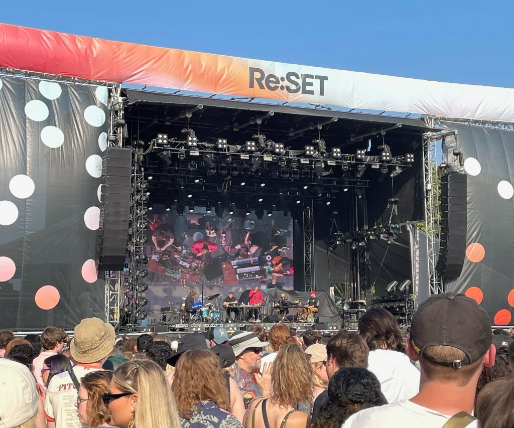 Recently viral indie trio boygenius, including Phoebe Bridgers, Lucy Dacus, and Julien Baker headlined Re:SET’s Saturday night, delivering an all around experience of lights, visuals, and a variety of song paces. Kicking off their set with “Without You Without Them” off their March album The Record, the group brought their audience into their world with visuals of the three gathering together behind stage and quickly transitioned into the upbeat “$20” from the same album. High energy made its way through the crowd with screams matching the flashing lights on stage and notable sounds of the electric guitars. boygenius’s live performance revealed the close-knit community of the three and their fan base both on and off stage, with many listeners listening since their first album together in 2018 and many more listeners joining since the release of The Record.