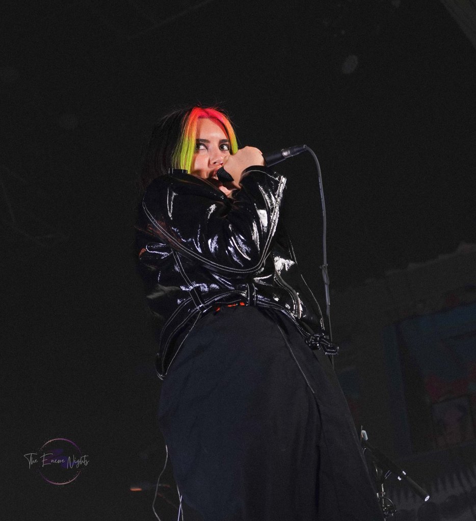 LA-based singer and previous American Idol contestant Geena Fortanella primarily known as “Geena” introduced herself with a nostalgically early 200s pop presence. Geena had the crowd dancing and singing along to one of her songs that smoothly transitioned into a cover of the “Teenage Dirtbag” chorus, but it didn’t stop there. Geena’s quick audience engagement continued past her set with loud cheering even as set up for the next opener began.
