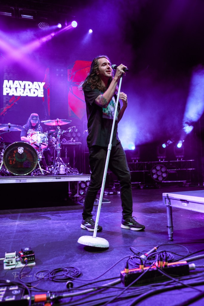 Next to take the stage is one of my favorite bands, Mayday Parade. I never miss an opportunity to see them when they come to town. Because of the length of Yellowcard’s set tonight, Mayday also played a fairly short set. They began the set with “Oh Well, Oh Well” which is one of my favorite songs by them and it’s always fun to see them open with it. They seamlessly transitioned into a newly released song “More Like Crash.” They then finished their first three songs with an older tune, “Anywhere but here.” Before staring emo anthem, “Miserable at Best,” lead singer Derek yelled out “emo music is alive and well in the year 2023.” They finished up their set with two newer songs, “Piece of My Heart” and “Got Me All Wrong” and two older songs, “Jersey” and “Jaime All Over.”