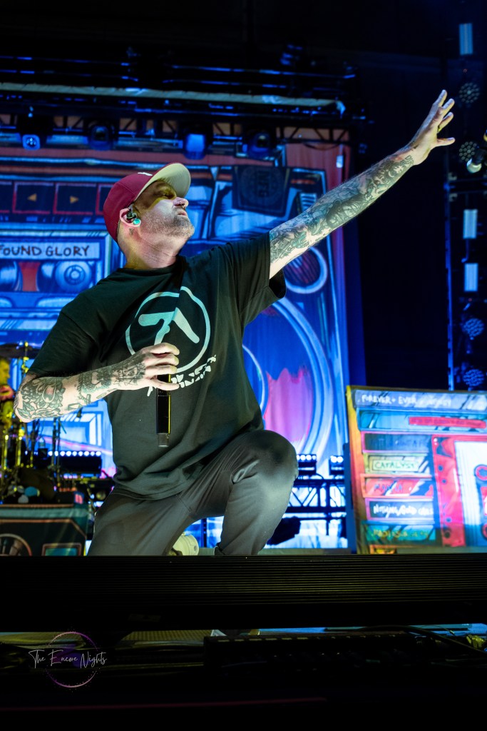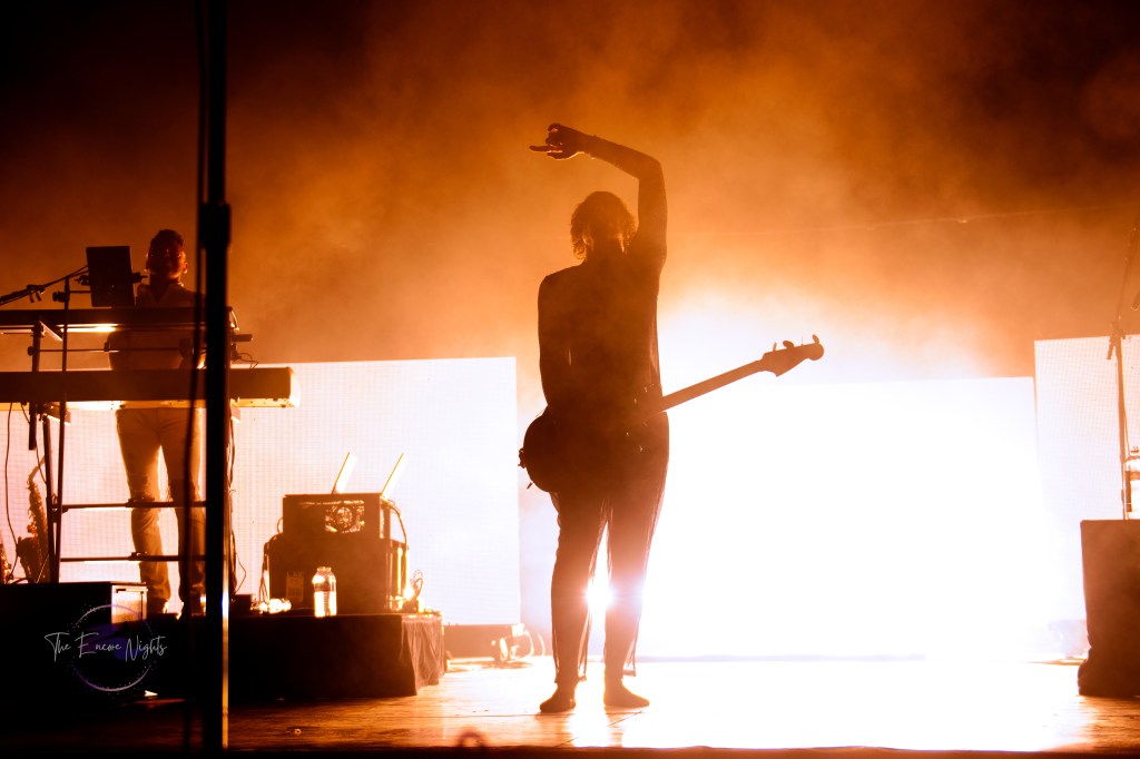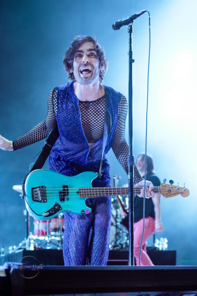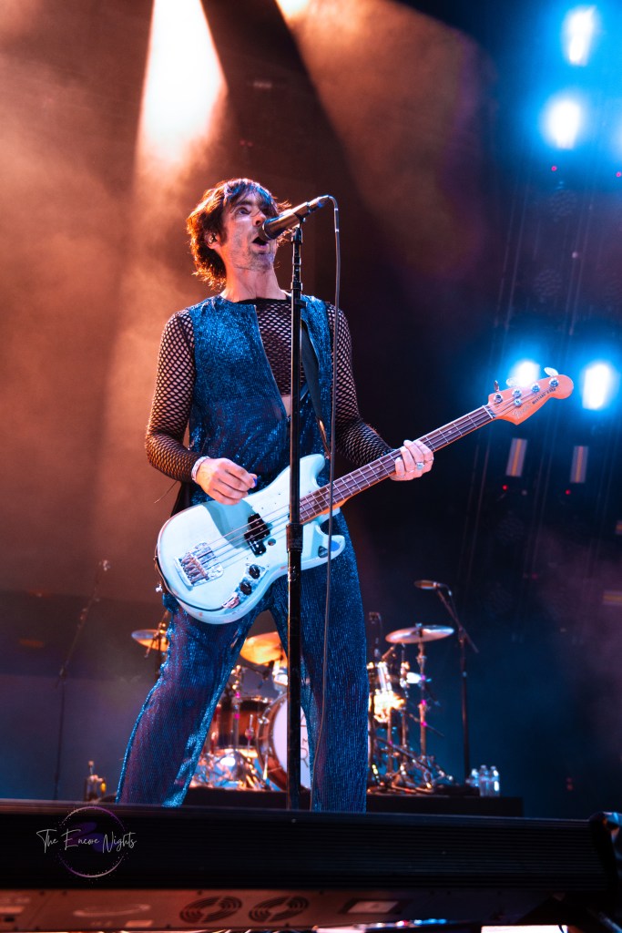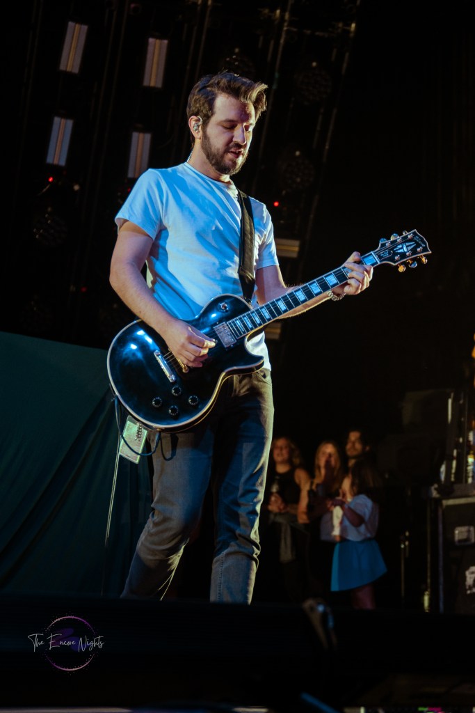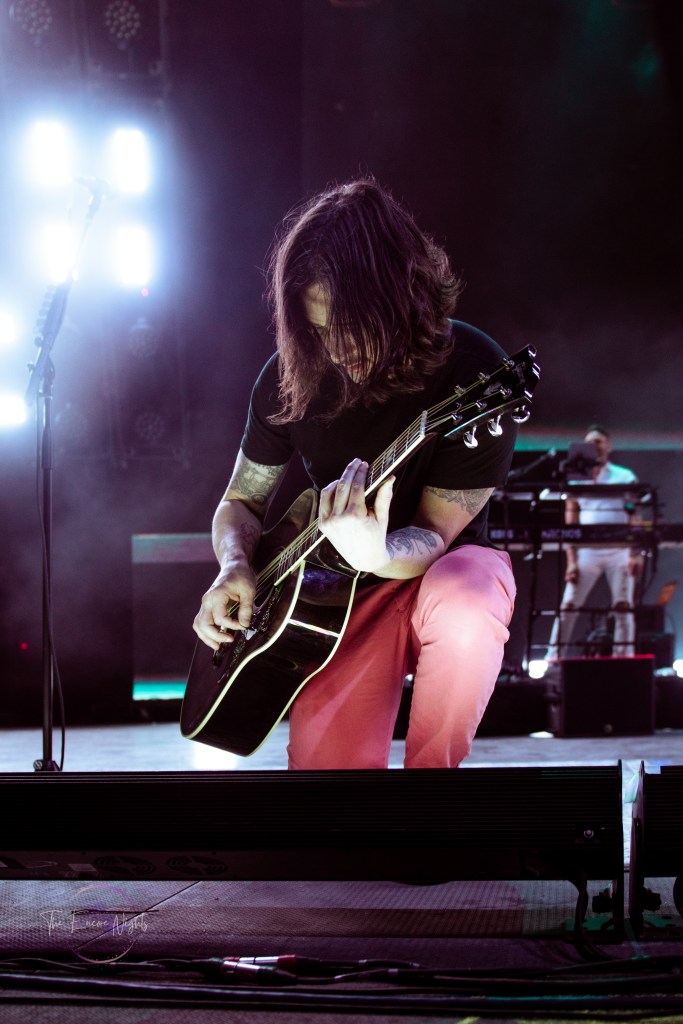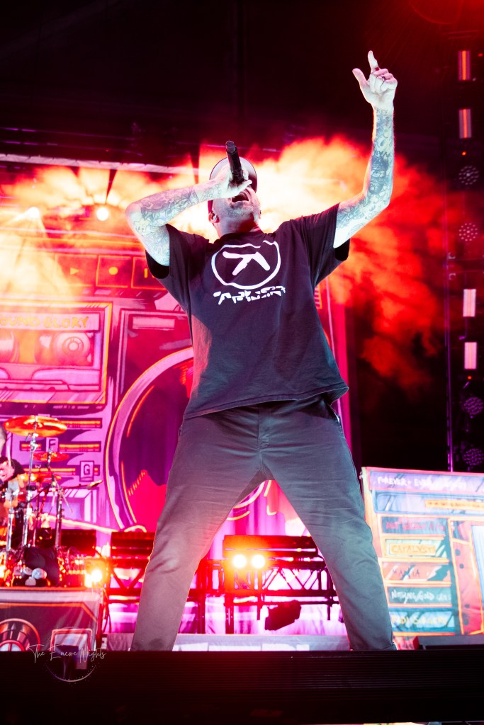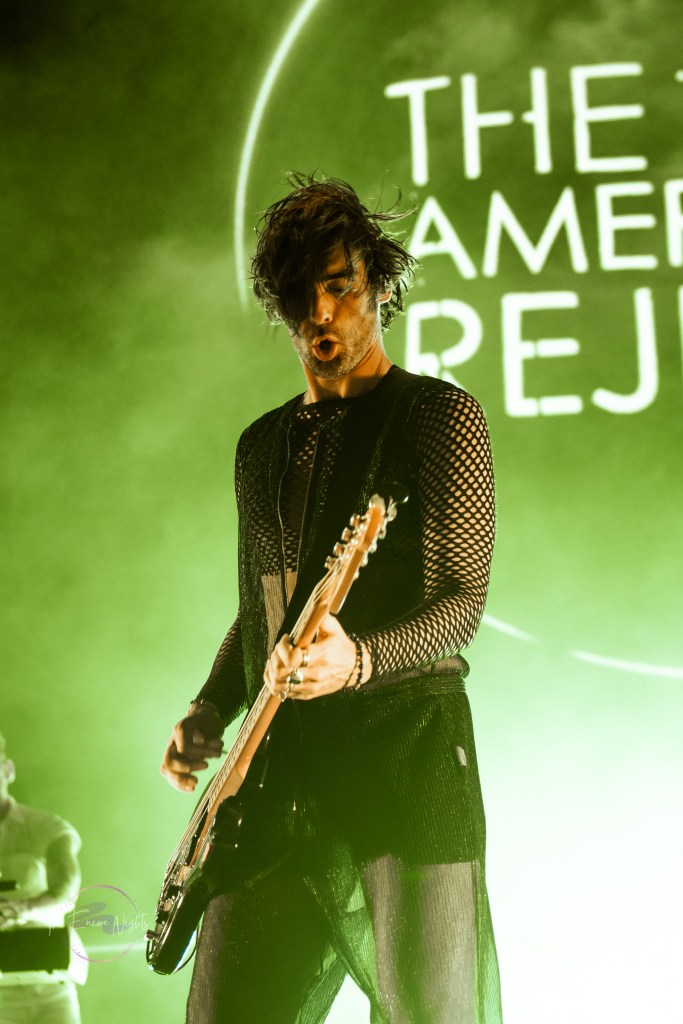 The All-American Rejects finally took the stage to a crowd shaking with anticipation. They opened with one of their most popular songs “Swing, Swing” which got the crowd dancing immediately. Lead singer Tyson Ritter commanded the stage with familiar vocals and slightly unhinged energy. He headband and danced all over the stage, encouraging the crowd to the same. They continued through their set playing fan favorites such as “Dirty Little Secret,” “I Wanna,” and “Sweat.” Before playing the song “I’m Waiting” guitarists Mike Kennerty and Nick Wheeler had a fun dueling guitars moment that had the crowd screaming. Before we knew it the band was finishing song “It Ends Tonight” and leaving the stage before their encore.