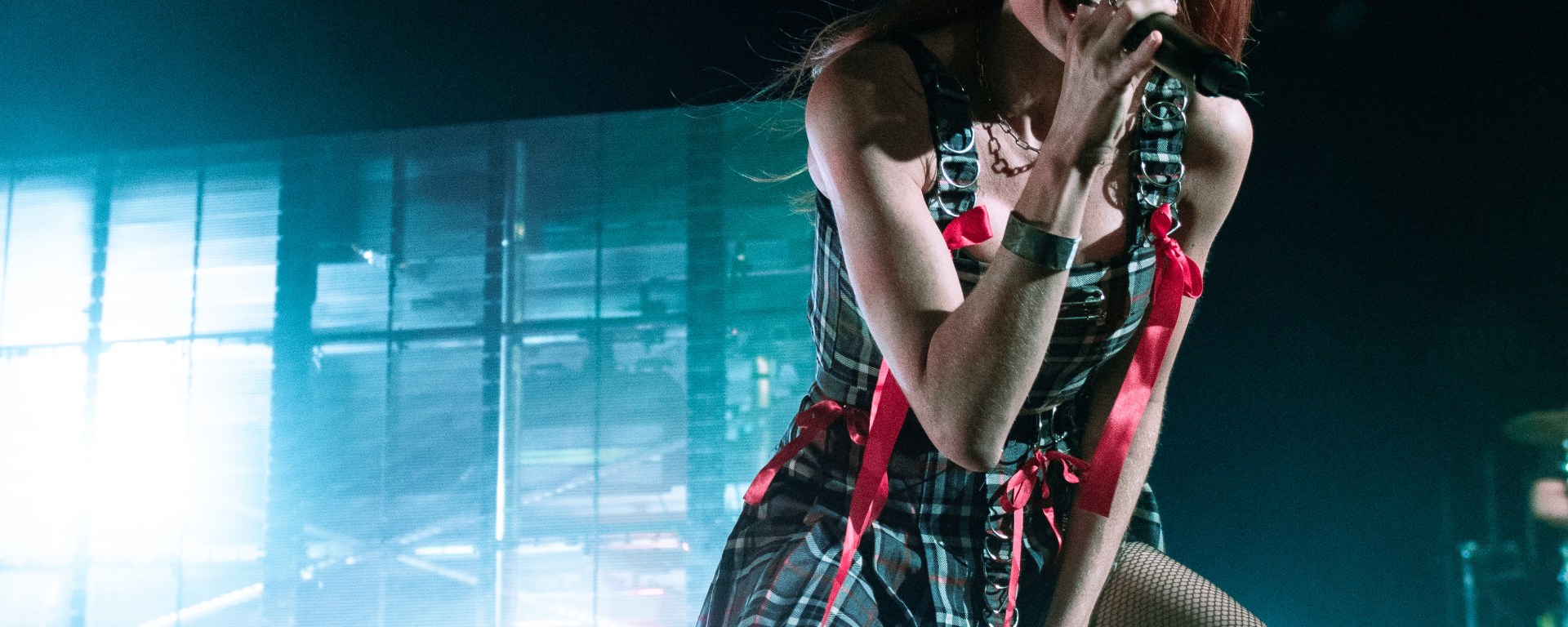 After playing a few songs from Nosebleeds, they took a break from the new album and played “whywhywhy,” a song off their 2020 album, SUPERBLOOM. After “whywhywhy,” they continued on with playing more of Nosebleeds. During song “Ultraviolet” Mandy went to the top of the LED screen once more, but this time with arrows stuck in her back. After this, Mandy came back to the stage with the rest of the band and they once again took a break from the Nosebleeds songs and played “SUPERBLOOM.”