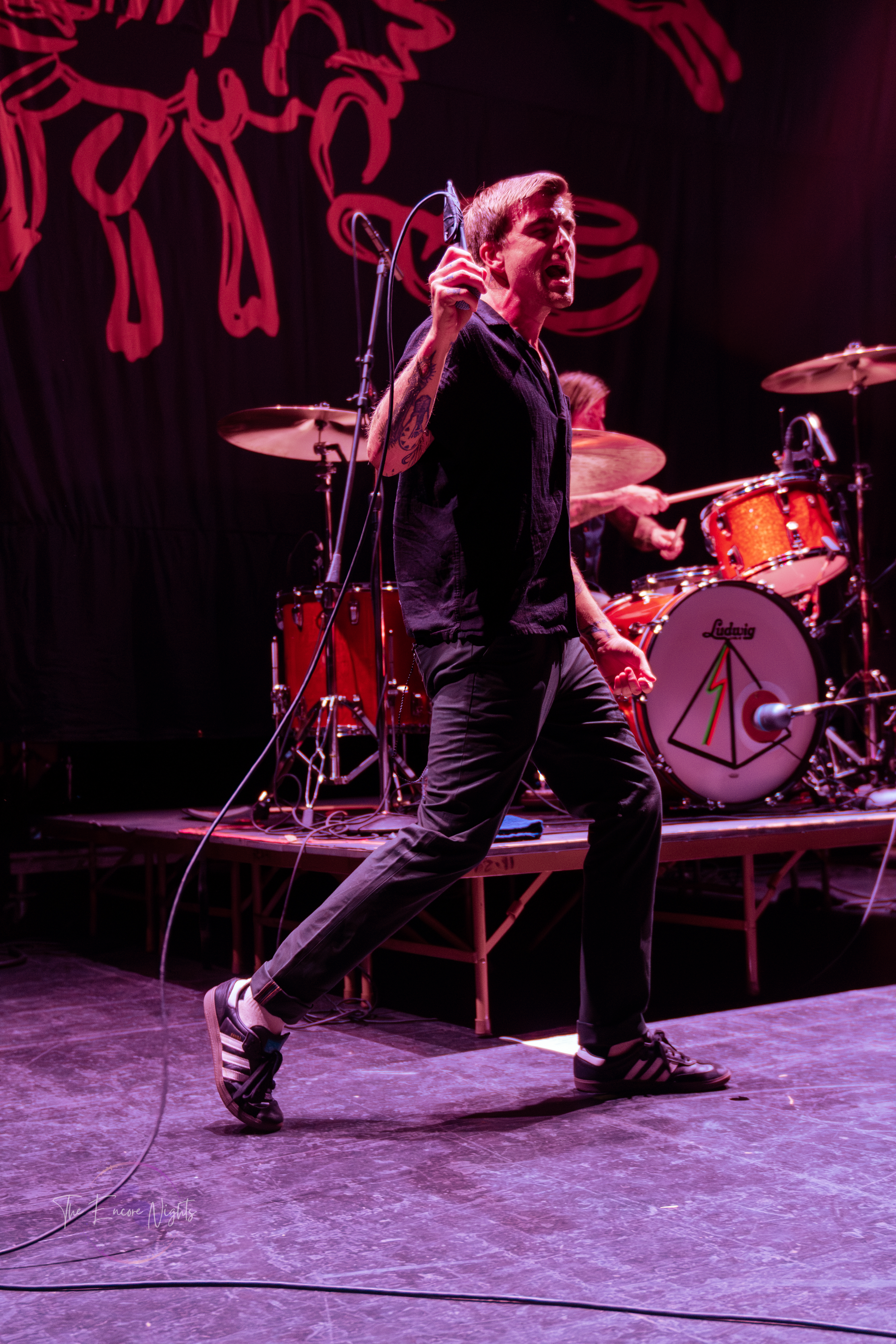 The last of the openers were L.S Dunes, a supergroup comprised of Anthony Green of Circa Survive, Frank Lero of My Chemical Romance, Tim Payne and Tucker Rule both from the band Thursday. They took the stage and people began immediately screaming. With all the members of the band being successful for other projects aside from L.S Dunes, they were met with a different energy from the crowd. The band is fairly new, having come together during quarantine. They have one album from 2022 called Past Lives. The group played all songs from Past Lives, and one song called “Benadryl Subreddit,” which is assumed to be from an upcoming album. L.S Dunes really got the energy up and the crowd ready for Pierce The Veil to take the stage.