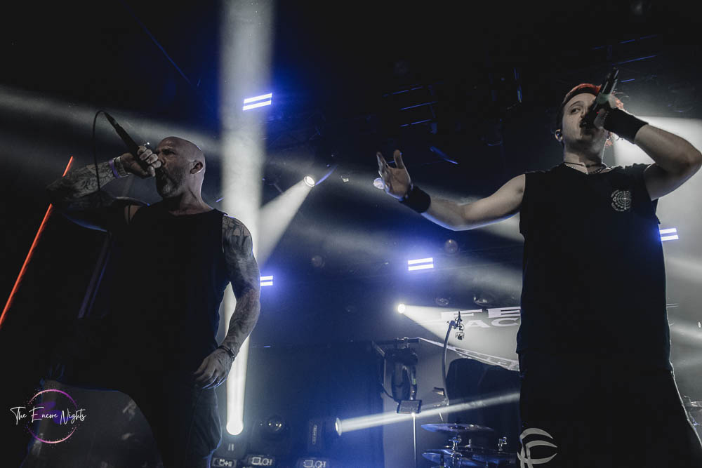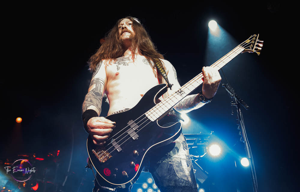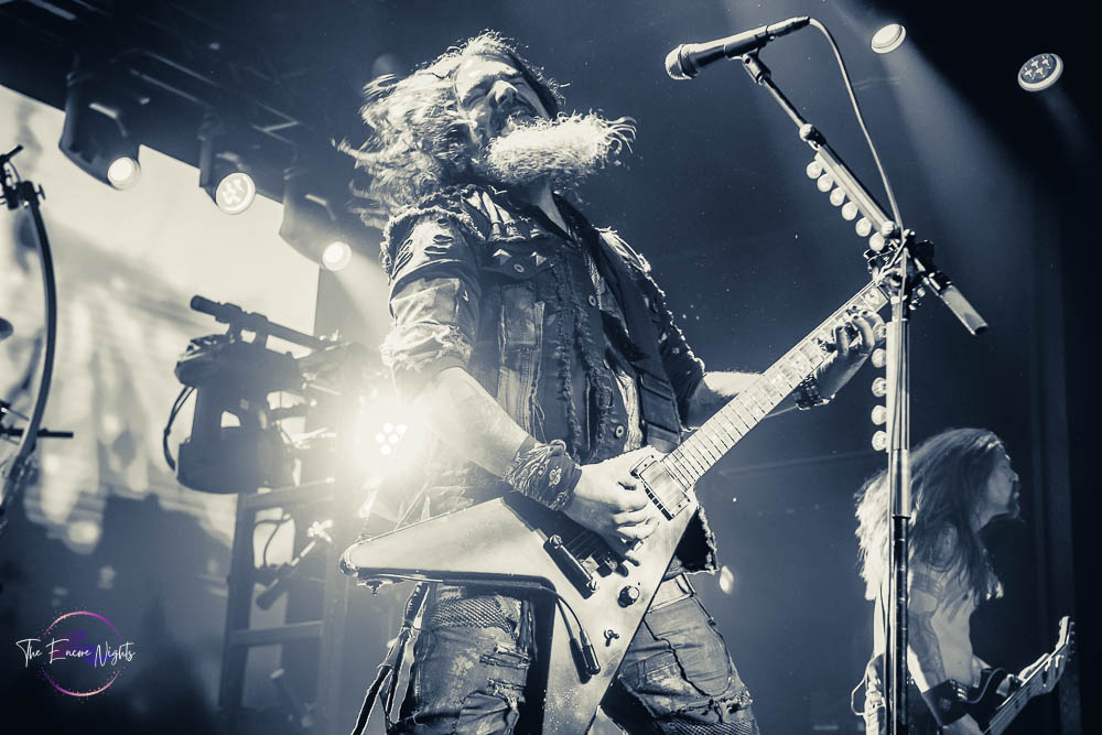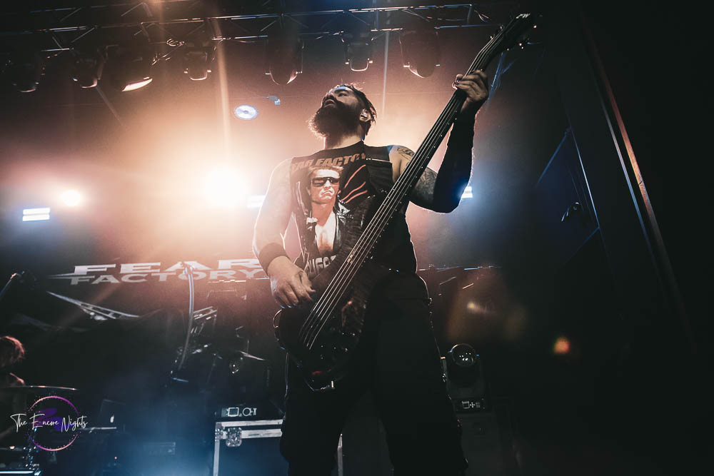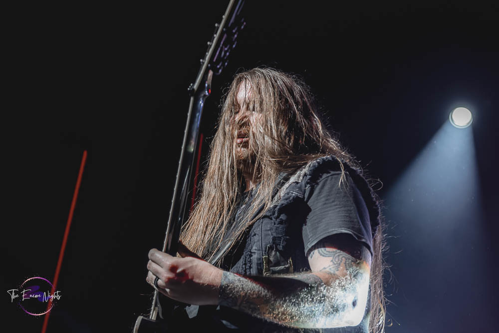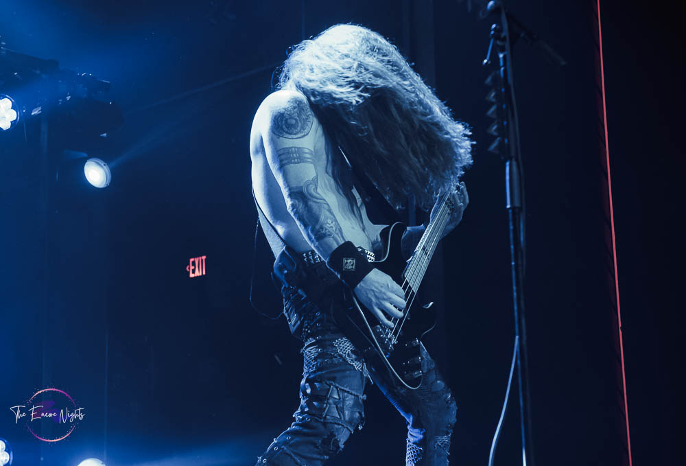 The third band to go up was the legendary Fear Factory. In 2021, they released their tenth studio album, Aggression Continuum. In 2023, Fear Factory announced their new singer Milo Silvestro who had replaced Burton C. Bell who left the band in 2020 after being their singer for 31 years. That left founding member and guitarist Dino Cazares as the only remaining original member of the band. The lights went out and the now packed venue cheered with excitement as the members made their way to the stage. It’s known that Fear Factory write a lot of songs about the Terminator film franchise, so it’s no surprise that they use the Terminator 2 theme song as they’re walking to the stage. To kick off their set, Fear Factory started with “Shock,” the first song from their landmark album, Obsolete. In classic metal fashion, fans started moshing and banging their heads. The second song performed was the second song from the same album and is also one of their more popular songs. That song was “Edgecrusher” and it was extra special because the band was joined on stage by Brandan Schieppati who fronts the metalcore band, Bleeding Through. With only a short set time, Fear Factory made every minute count as they played heavy hitter after heavy hitter. Some of their songs performed included “Powershifter,” “Linchpin,” “Slave Labor” and “Demanufacture.” For the finale of their set, Fear Factory asked the fans to give it their all as this was the last stop of the tour. The last song of their set was “Replica,” their usual ending song. It was an amazing set and Fear Factory keeps sounding good with no signs of slowing down. Now, there was just one more band to end the night so there was still plenty of metal to go around.