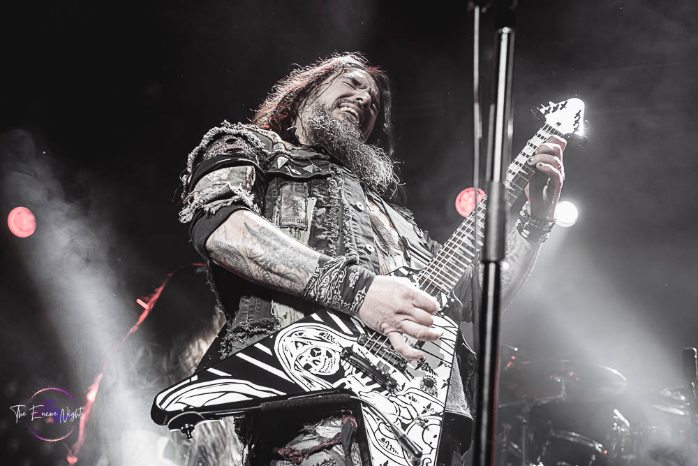 Headlining the tour was the almighty Machine Head. In 2022, they released their tenth studio album titled, Of Kingdom and Crown. As Machine Head prepared to go on stage, the venue had been packed to near sold-out capacity. The song “Diary of a Madman” by Ozzy Osbourne played over the speakers and fans of Machine Head know that when that song is played, that means that Machine Head is about to start. As the song was finishing up, the lights went out and the LCD lit up to reveal in big red bloody writing, “Machine Fucking Head.” The crowd erupted with excitement as frontman Rob Flynn made his way to the stage first, followed by his bandmates. This is the first tour to feature Reece Scruggs on guitar as he had replaced Wacław “Vogg” Kiełtyka who had to step down due to priorities with his main band, Polish death metal band Decapitated. Machine started their show with “Imperium” and the melody of the music has the fans moshing, jumping and banging their heads. During the middle of the song, Flynn announces that he wants a fast mosh pit as the guitar solo for the song happens. Los Angeles never fails when it comes to fast mosh pits. After the first song, Flynn asked if they wanted something heavy. The crowd obviously cheered that they did. The second performed was “Ten Ton Hammer” and the heaviness of the intro always sends the crowd into a frenzy. Soon came the time to play one of their best songs, “Aesthetics of Hate.” That’s one of their fastest songs that keeps the mosh pits going and even crowd surfers made an appearance. Near the end of the song, the LCD screen showed photos of brothers Dimebag Darrell and Vinnie Paul who formed the legendary band Pantera and both who have since passed away. Machine Head know how to drive the fans wild with fast and heavy songs and they kept the energy up as they played classics like “Old,” “Locust” and “From This Day.” Nearing the end of the show, Machine Head played another one of their best song called, “Davidian.” During the second half of the song, Milo Silvestro from Fear Factory came out to join them and sing the rest of the song for them. The fans love singing the chorus line, “Let freedom ring with a shotgun blast!” The song ended, the band left the stage, the lights went out and all seemed quiet. The fans continued to cheer and eventually started chanting, “Machine Fucking Head! Machine Fucking Head!” After a few minutes, Machine Head came back out for one more song. The ending song was their most popular song, “Halo.” Flynn asked everyone to headbang to the intro and, of course, just about everyone did. The show came to an end and Machine Head took a picture with the audience before saying their goodbyes once again and leaving the stage. A perfect way to end a month-long tour and surely, fans couldn’t wait to see these bands again.