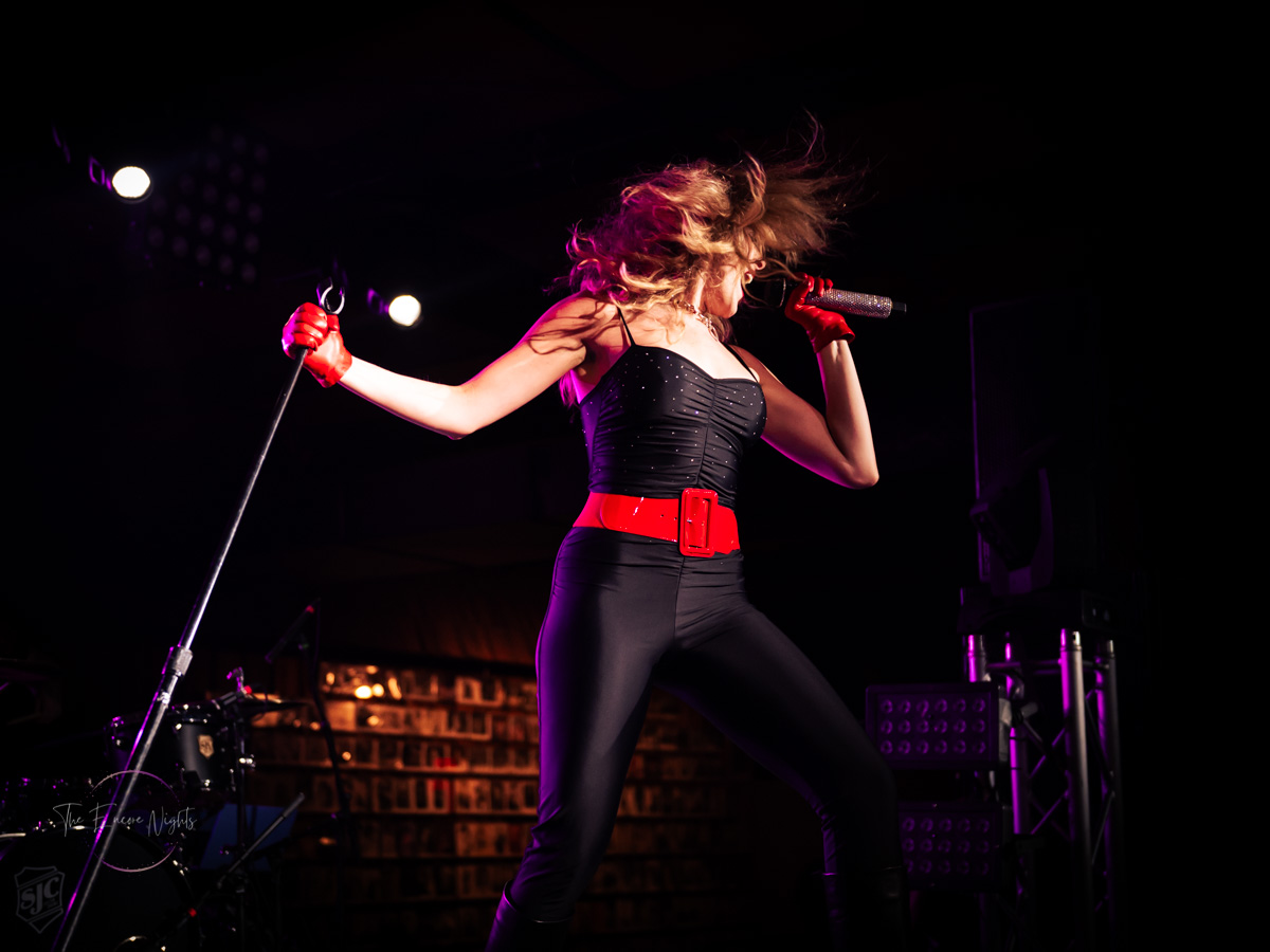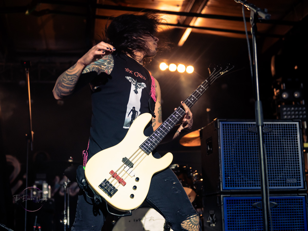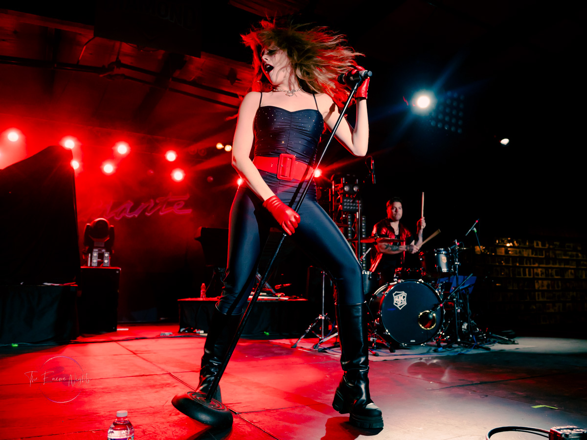 Following Starbenders, the next act to take the stage was Diamante, an absolute powerhouse of a singer who is currently working to bring back the 80s with a modern twist. Dressed in a tight, glittery jumpsuit with a bright red belt and gloves to match her lipstick and bold, teased blonde hair, Dia came out on stage and absolutely commanded the audience’s attention as she broke into her debut single “Bite Your Kiss.” Diamante’s music embodies all the best elements of 80s tunes, both power ballads and raunchier rockers like the aforementioned “Kiss” and the lead single from her 2018 debut album, “Coming in Hot,” without sounding dated. Her live vocals are nothing short of phenomenal, and her short set, which included singles from both Coming in Hot and 2021’s American Dream, as well as newest single “1987” and a cover of Pat Benatar’s “Love is a Battlefield” left me wanting more. My first time seeing Diamante live was at the same venue almost 6 years ago when she toured with Bad Wolves and From Ashes to New not long after the release of Coming in Hot, and I hope to be able to catch a headlining set from her soon!