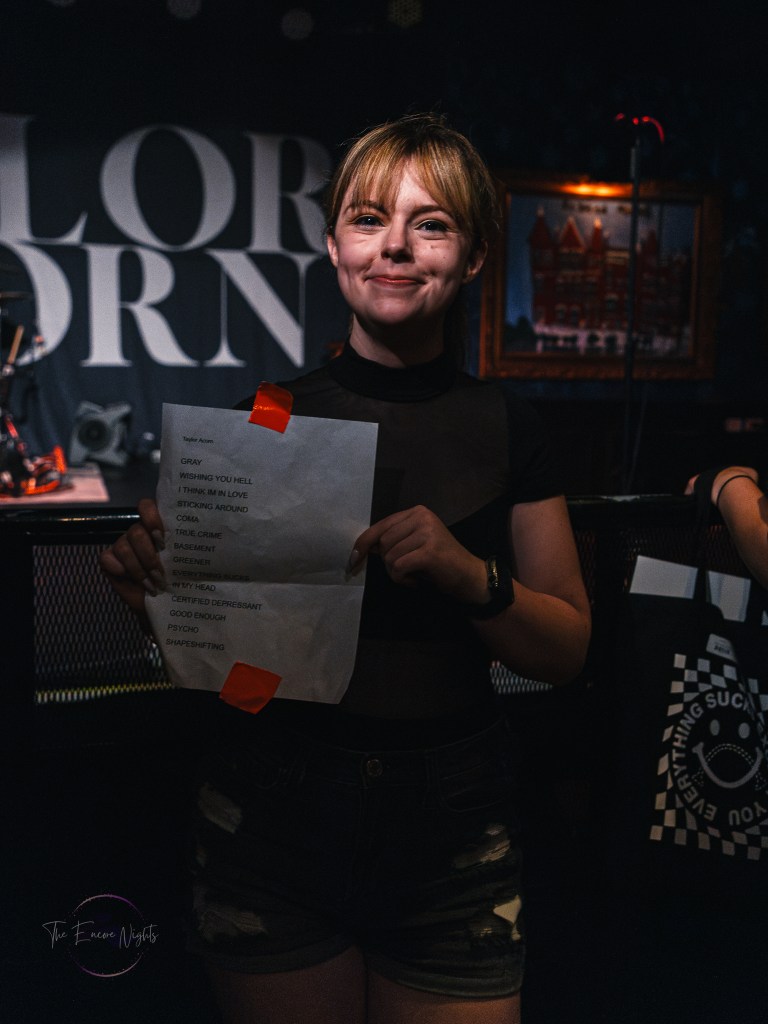 For those who’ve never seen Taylor Acorn live, it would be hard to imagine just how much energy she packs right out of the gate. Taking the stage with ‘Gray’, Acorn started to show at the top of her game. Although admitting to have been fighting sickness throughout the tour, Acorn’s vocals were incredible as always. There was not a single still person in the crowd, jumping along with Taylor as she transitioned into ‘Wishing You Hell’ and ‘I Think I’m In Love’. During her song ‘True Crime’ she even brought out John Sinclair from World’s First Cinema to join her with his violin. It was so clear while watching the show just how much Acorn puts into her performance, making the small Cambridge Room feel larger than life. As the night came to an end, after Acorn had thanked the crowd multiple times over for their support, they ended the show with her biggest hits to date, ‘Psycho’ and ‘Shapeshifting’. Seeing Acorn jump down to the barricade to interact with as many her fans individually before she left was very touching to see, her authenticity as an artist on full display.
