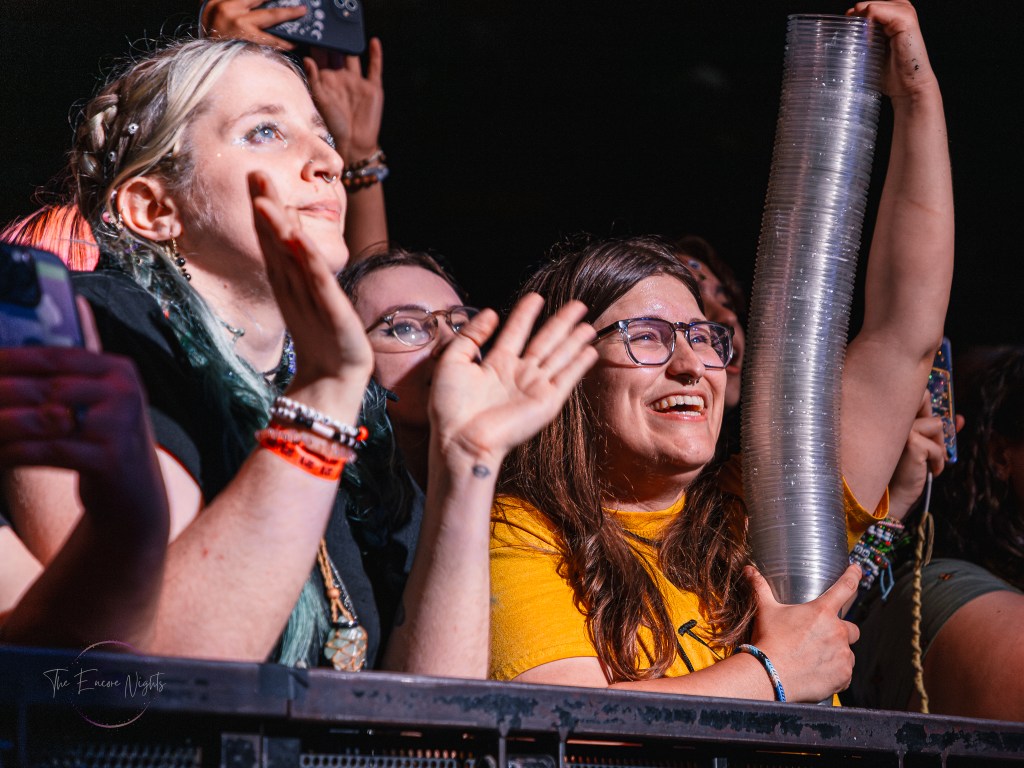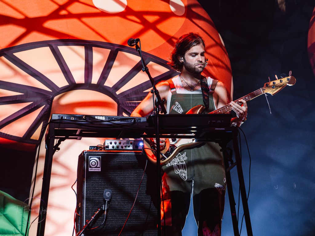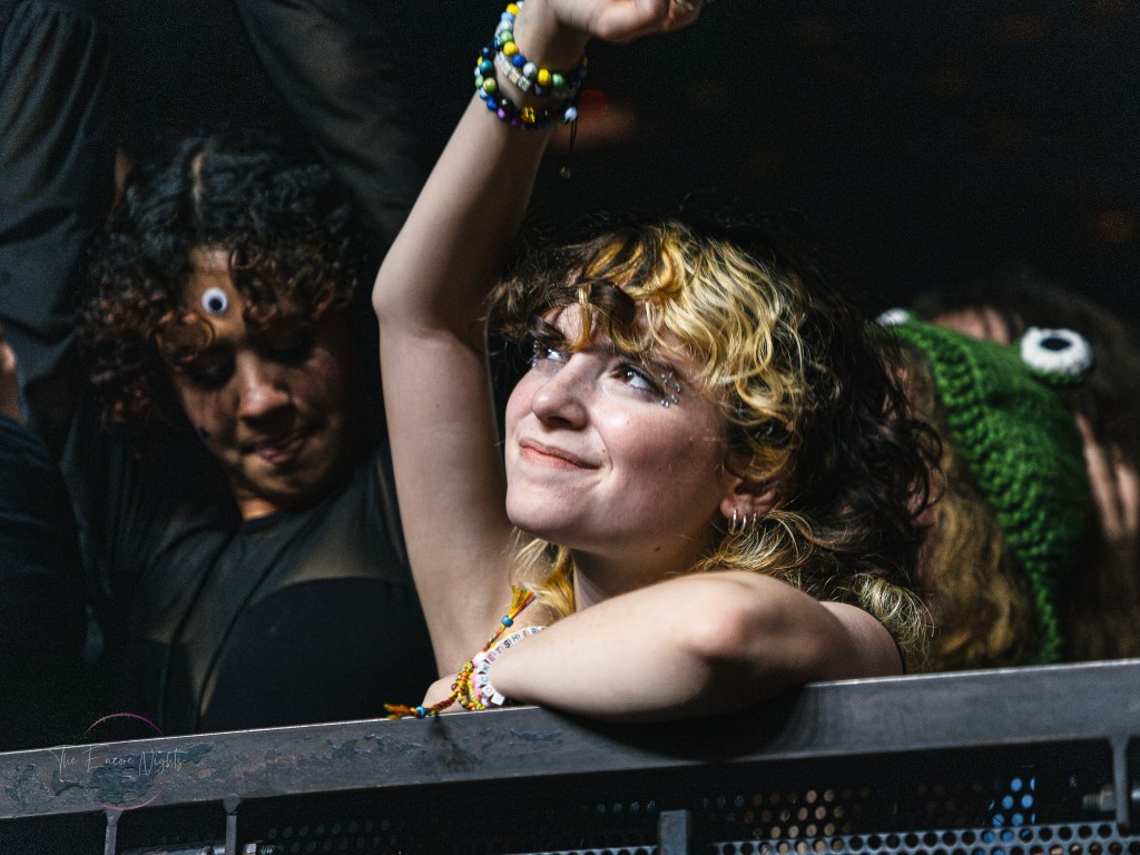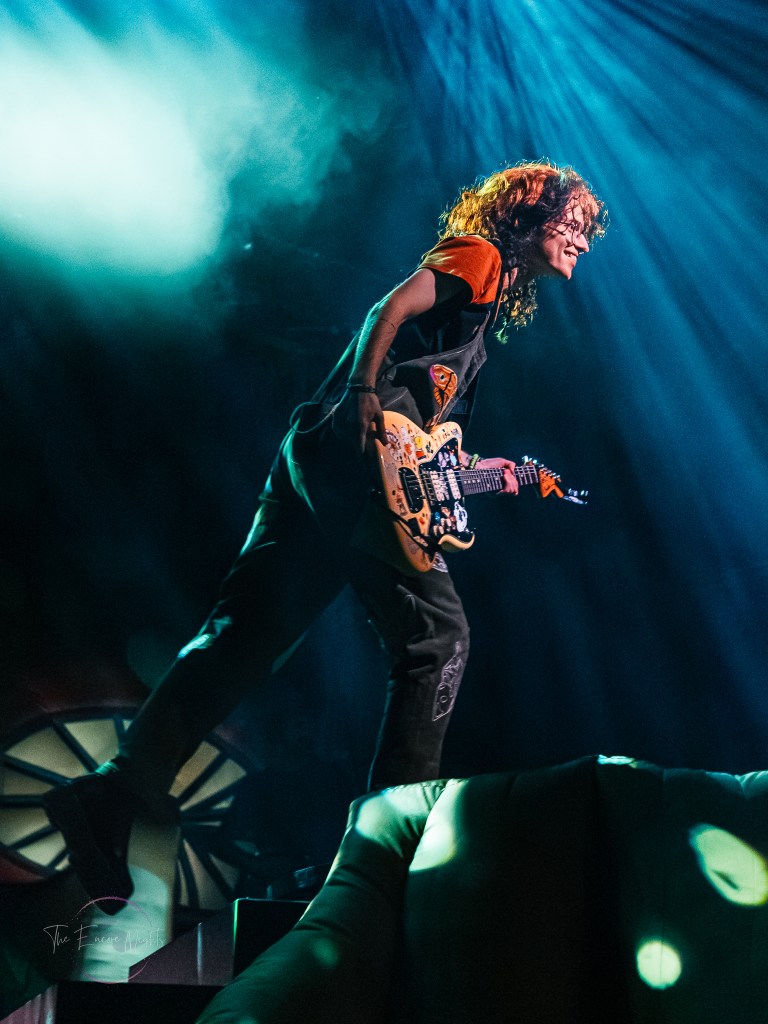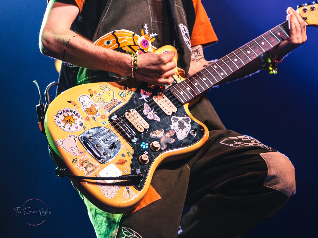 Adorned with moss and inflatable mushrooms, along with a tree stump directly in the middle as a pedestal, Cavetown took the stage with “let them know they’re on your mind”. Although a striking difference to the bands before him, frontman Robbie Skinner was able to still bring a rock-styled edge to his traditional indie-pop style. One minute he’d have the crowd chant for one of his touring staff dressed up in a frog costume, and then the next he’d be pouring his heart out over songs like “Green” or “Juliet”. It was clear to see just how personal these songs felt to the crowd as a lot of Cavetown’s discography touches on serious topics such his struggle with gender and sexual identity, mental health, and navigating love while on the aromantic and asexual spectrum. Closing out the show with “Boys Will Be Bugs” and an encore of “888” and “Devil Town”, it was hard to find a dry eye in the house as Robbie wrapped himself in a transgender flag gifted by a fan and giving his all one last time.