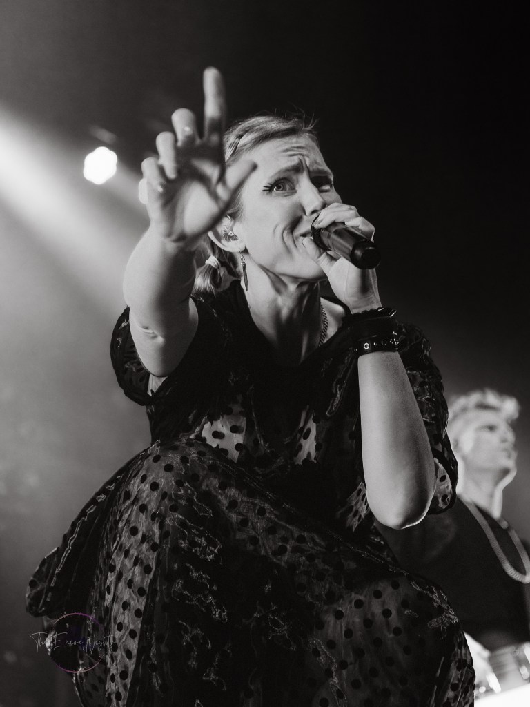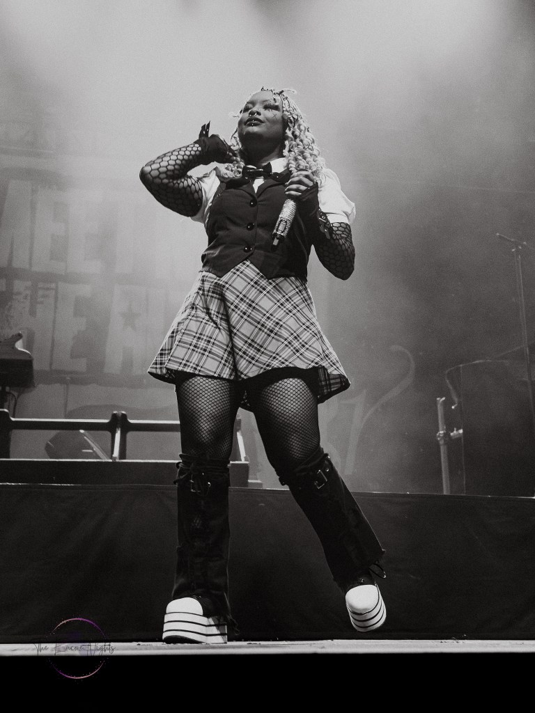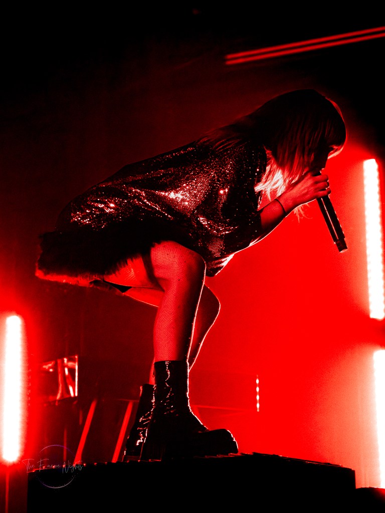 Starting off the night was Meet Me @ The Altar with their hit “Say It To My Face”. Although the normal trio was down to two, lead singer Edith Victoria and drummer Ada Juarez brought their ever-infectious energy to the max. Self-describing themselves as “music for the gays” drew loud cheers from the crowd as many were waving pride flags of all types. Although their set was short, it was clear they left a lasting impression on those new to them, playing other songs such as “Try”, “T.M.I.”, and ending with some serious crowd participation with “Kool”.