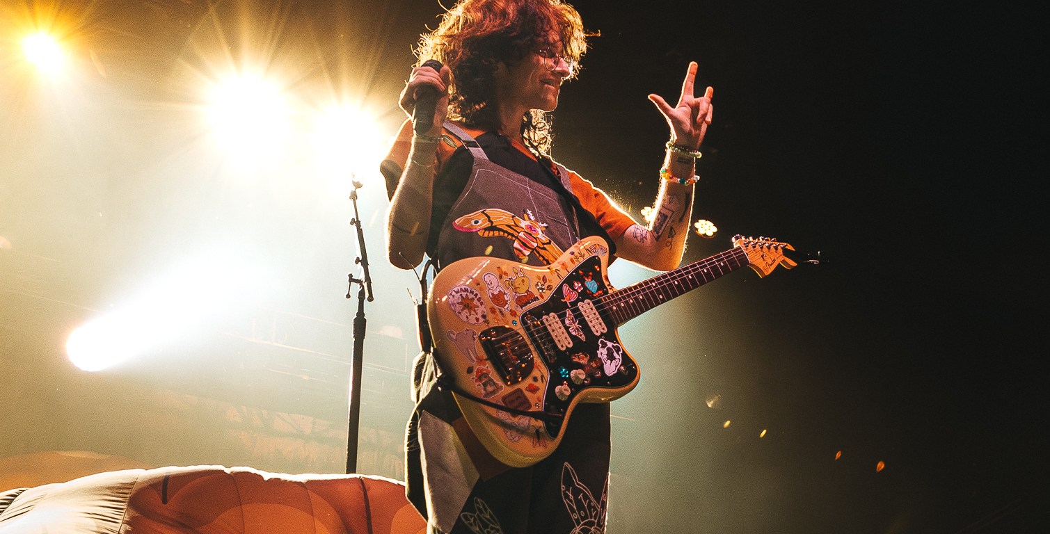 Adorned with moss and inflatable mushrooms, along with a tree stump directly in the middle as a pedestal, Cavetown took the stage with “let them know they’re on your mind”. Although a striking difference to the bands before him, frontman Robbie Skinner was able to still bring a rock-styled edge to his traditional indie-pop style. One minute he’d have the crowd chant for one of his touring staff dressed up in a frog costume, and then the next he’d be pouring his heart out over songs like “Green” or “Juliet”. It was clear to see just how personal these songs felt to the crowd as a lot of Cavetown’s discography touches on serious topics such his struggle with gender and sexual identity, mental health, and navigating love while on the aromantic and asexual spectrum. Closing out the show with “Boys Will Be Bugs” and an encore of “888” and “Devil Town”, it was hard to find a dry eye in the house as Robbie wrapped himself in a transgender flag gifted by a fan and giving his all one last time.