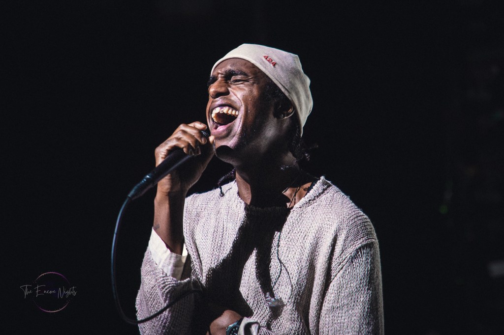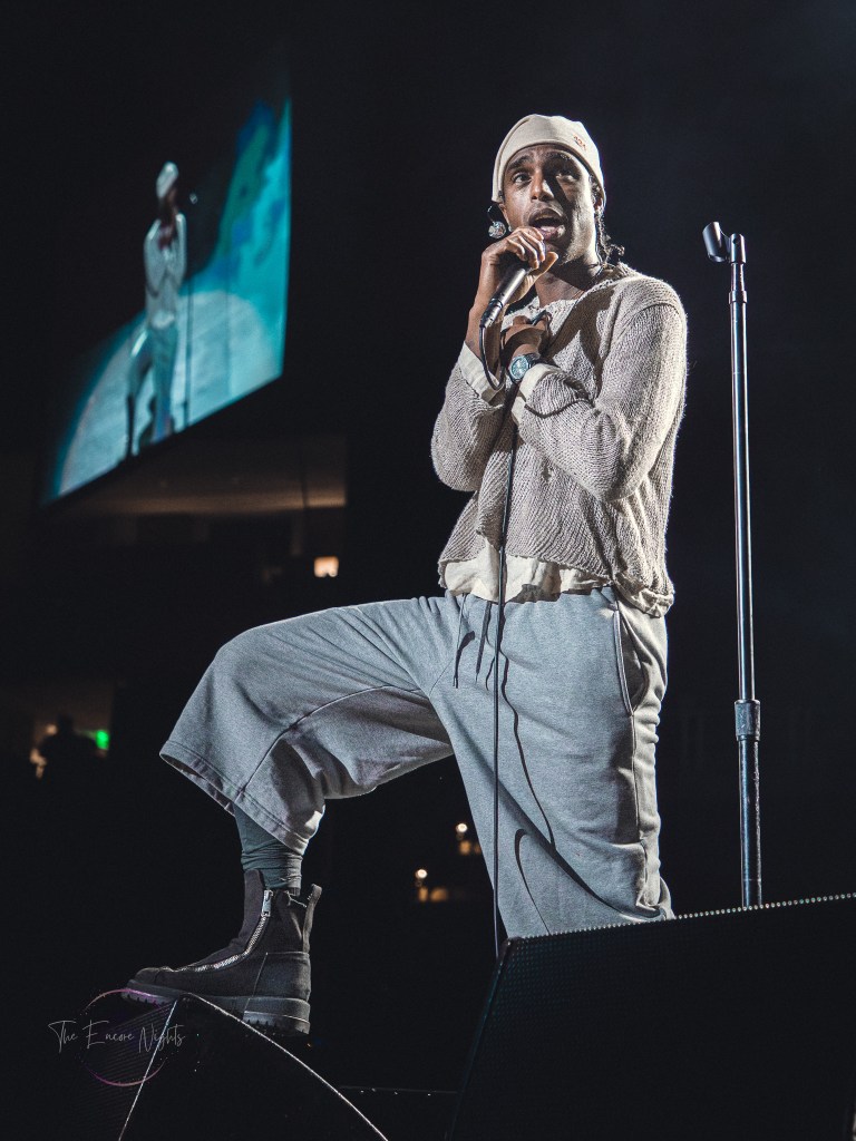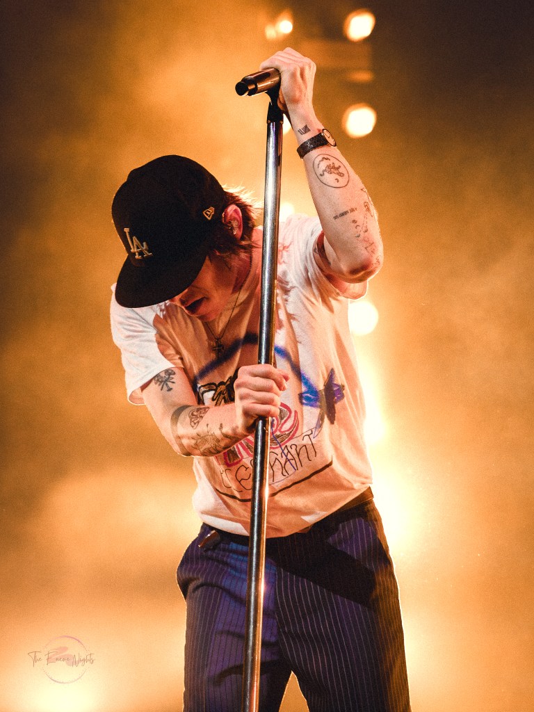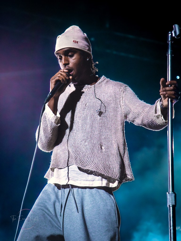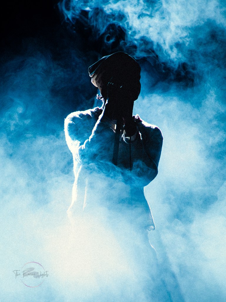 The next set of the night was Bakar, an England-native most known for their viral 2019 single ‘Hell N Back’. Opening with the song ‘All In’, Bakar was further upstage, covered in blue lights and smoke with a backlight behind him, giving off a beautiful moody vibe. He was not camera-shy however, standing on the stage amps and getting up close and personal during ‘1st Time’ and ‘Right Here, Right Now’. The response from the crowd was immediate, already roaring even though the night had really only just begun.