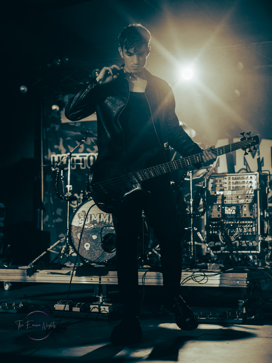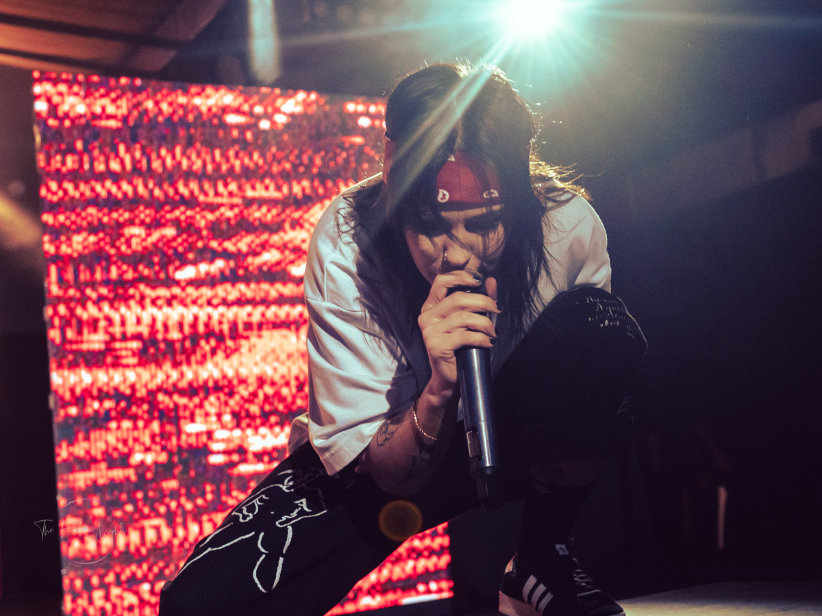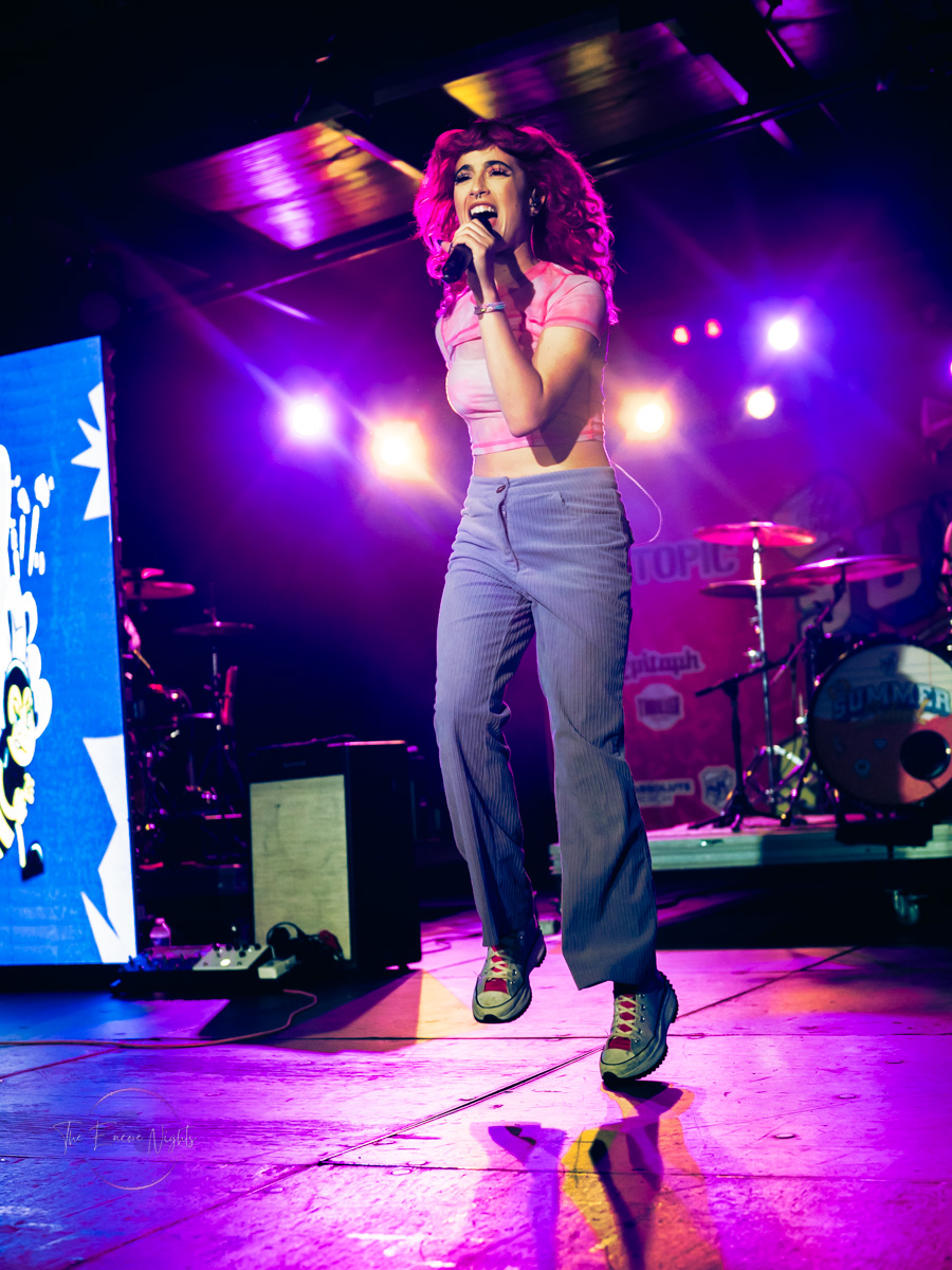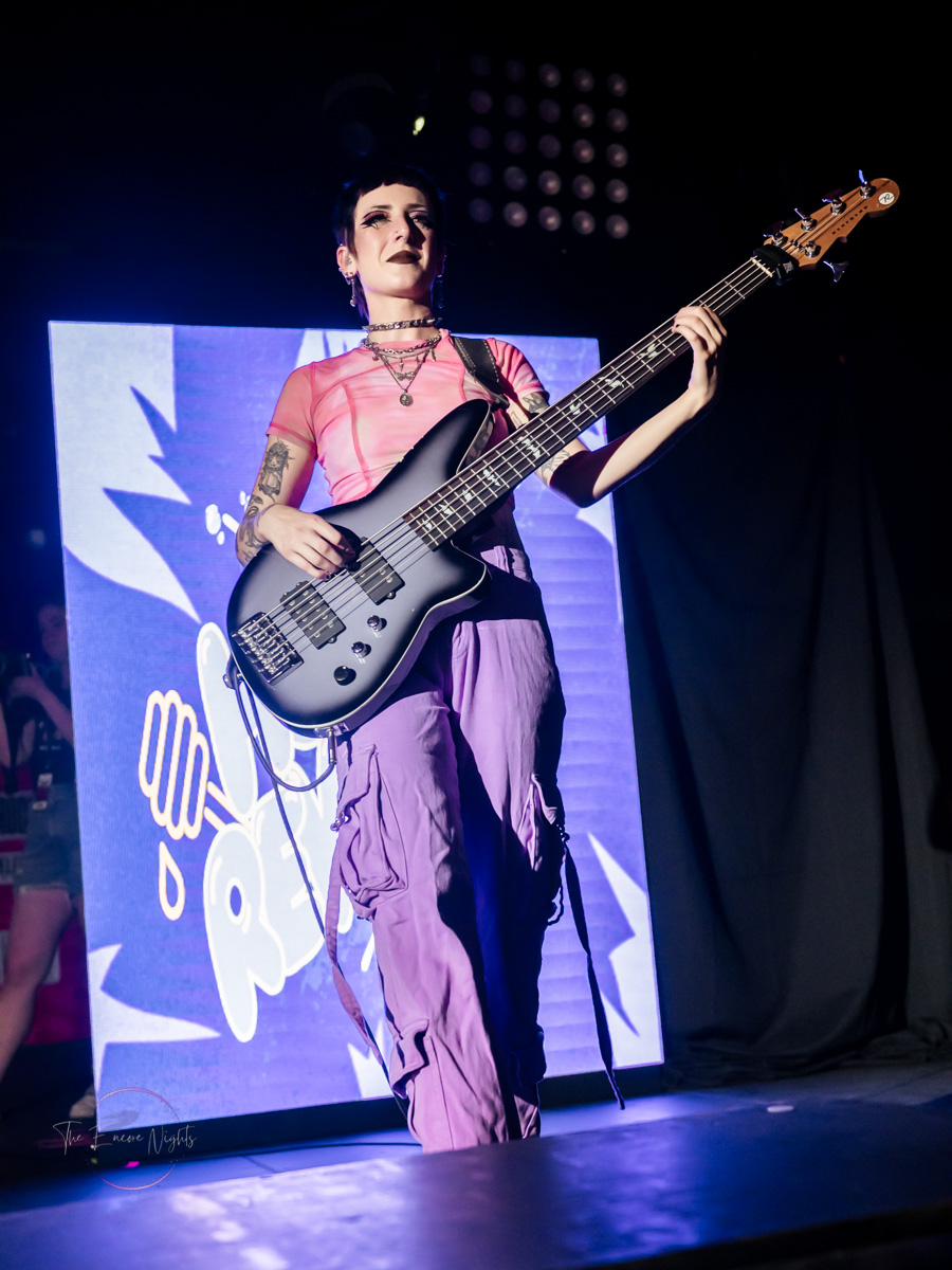 Next up was the heaviest act on the bill, alternative rockers Magnolia Park, blending spooky aesthetics with catchy choruses in genre-transcending beauty. Though their lighting was largely a photographer’s nightmare with a lot of heavy blue tones, their performance was one for the books, opening up with “Misfits” from Baku’s Revenge. The tone ranged from catchier pop-punk-esque moments like “Addison Rae” to heavier headbangers like “Animal”, and the crowd was eating it up. Near the end of the set, they brought Honey Revenge vocalist Devin Papadol back out for “Unholy Heart” in a highlighting moment, which was then one-upped by the giant conga line through the venue that broke out during their finale, “Feel Something”. Despite having to pause briefly during latest single “Shallow” to allow for security to attend to a medical emergency, both the band and the crowd seemed to be having the time of their lives.