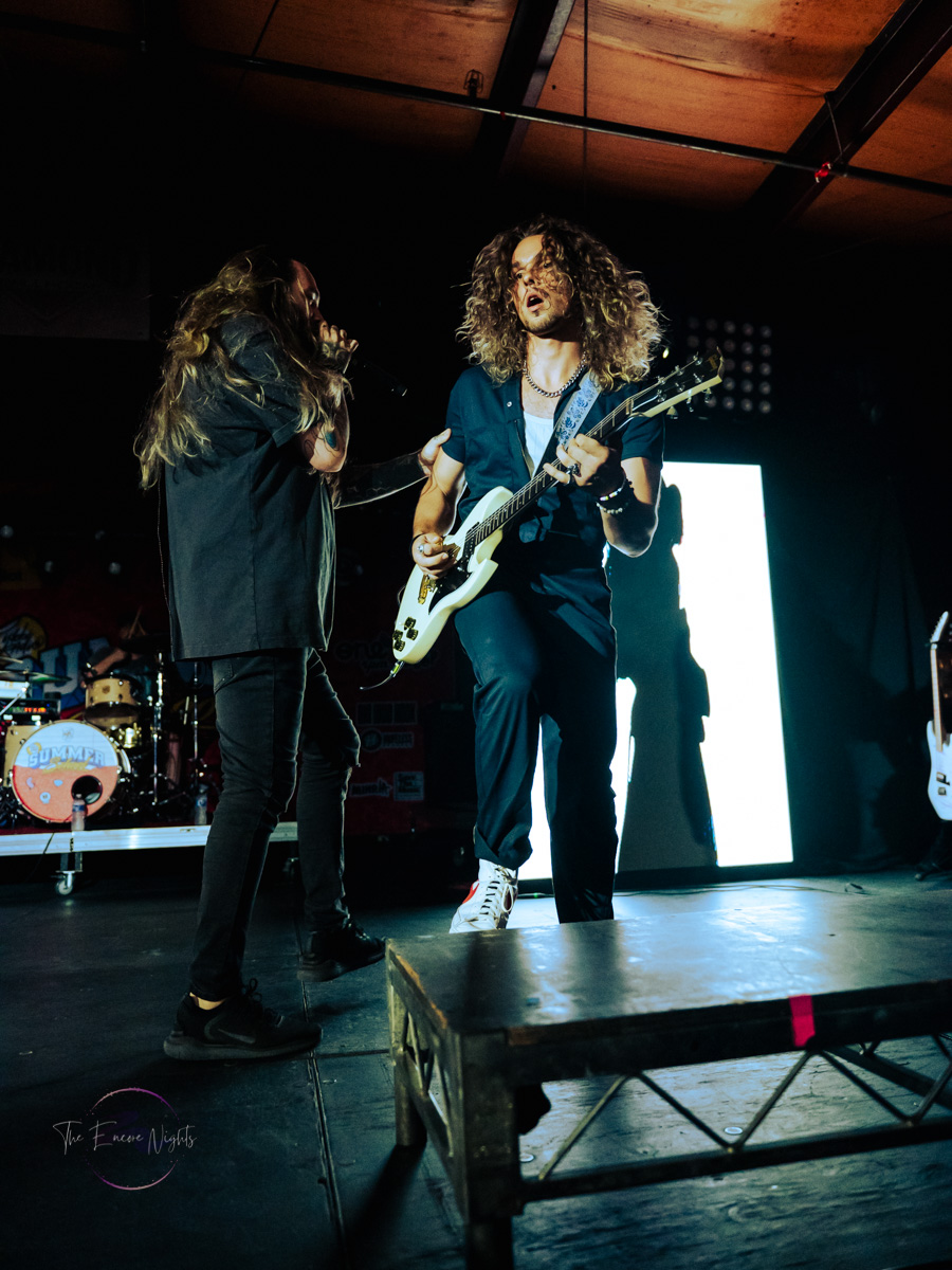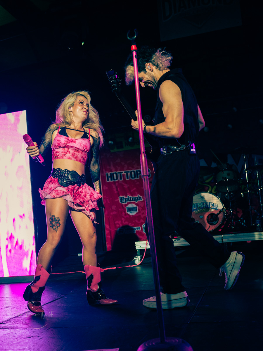 Next up were the other openers of the bill, Los Angeles-based pop-rockers Honey Revenge, who hit the stage with a chorus of cheers. They kicked off their high-energy set with “Recipe for Disaster”, the lead single off the deluxe re-issue of their 2023 debut full-length Retrovision. The duo, consisting of vocalist Devin Papadol and guitarist Donny Lloyd, bring an infectious energy to the stage that makes it impossible not to dance along. They were the only band on the bill that I had been able to see live already, having caught them on last year’s Retrovision Tour, and I am so happy to see them continuing to grow.