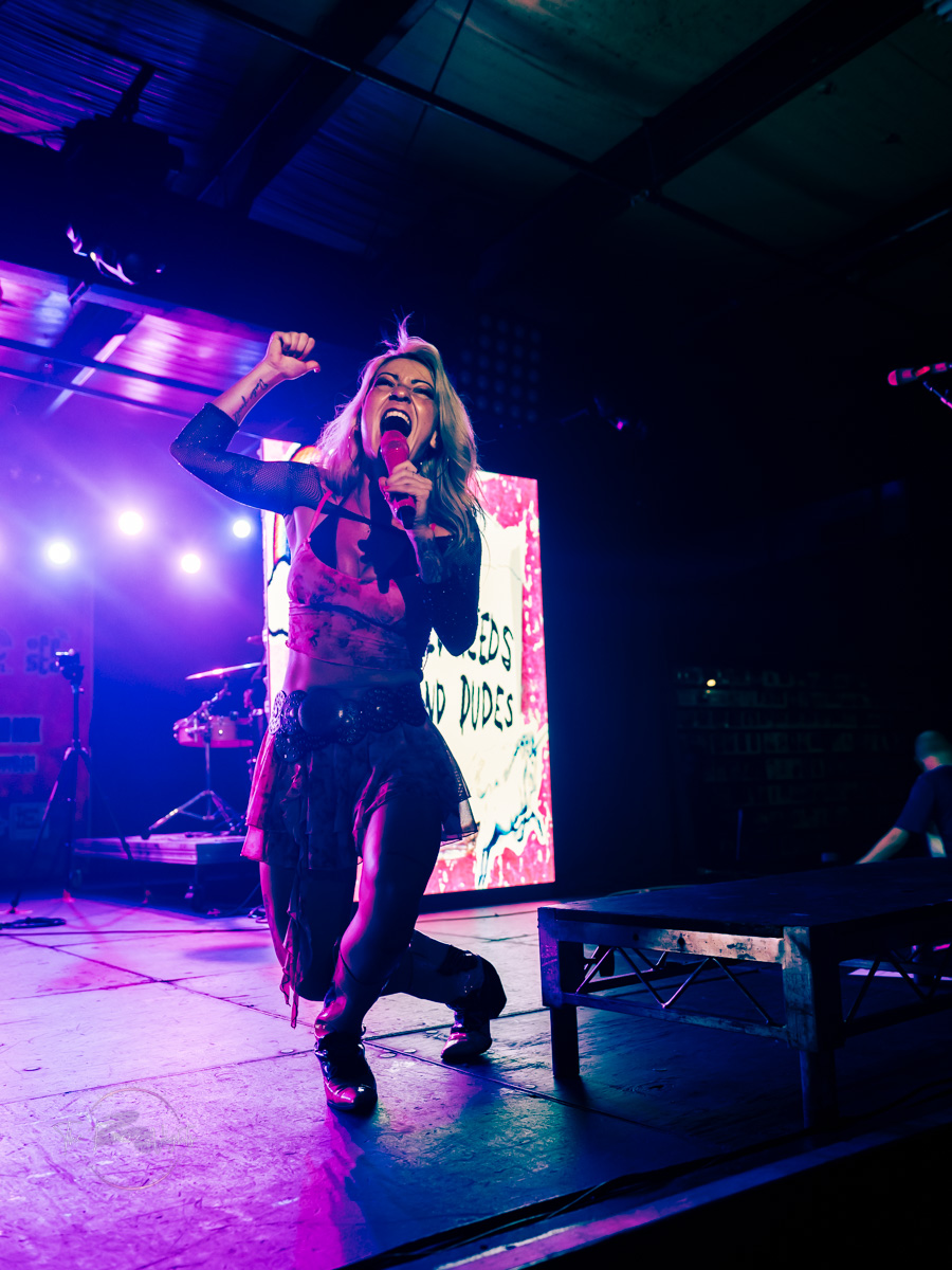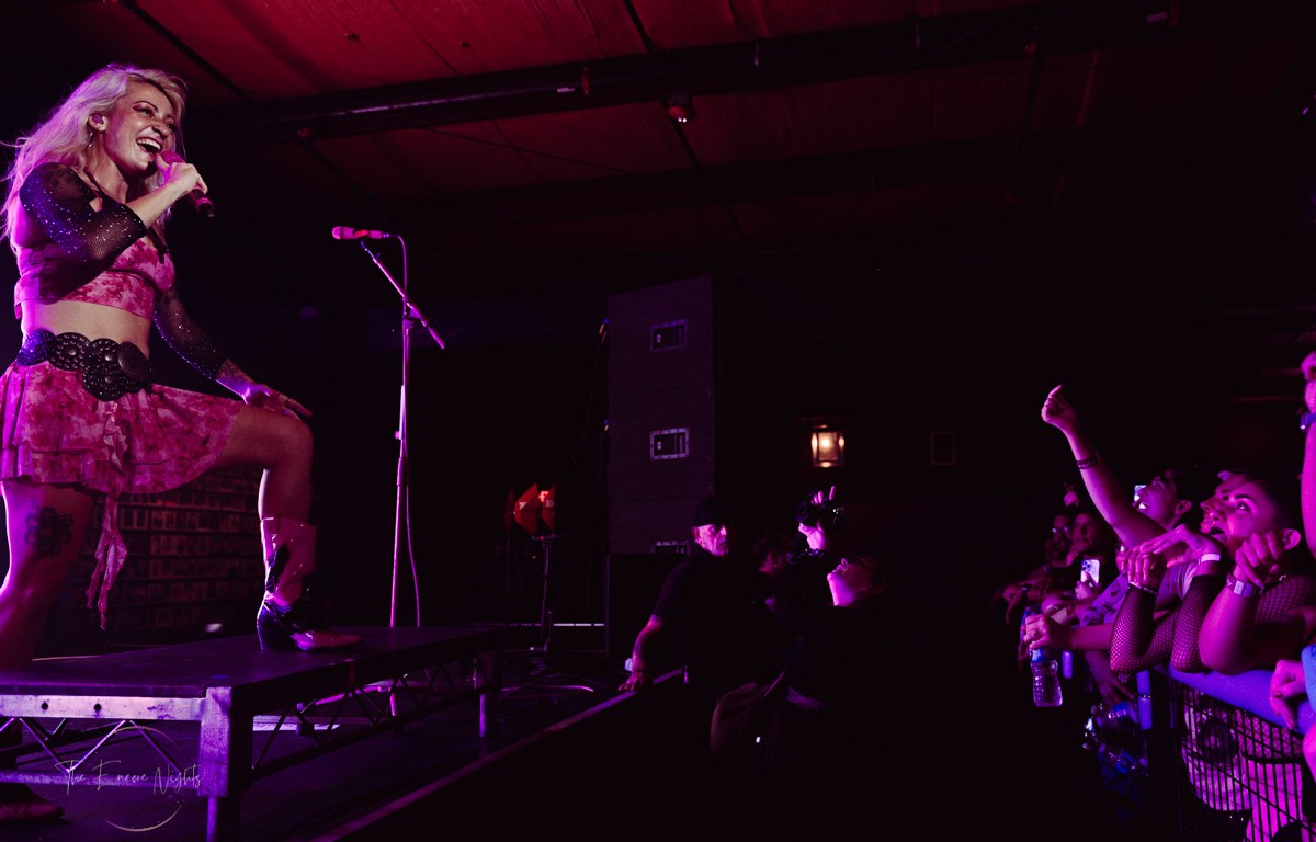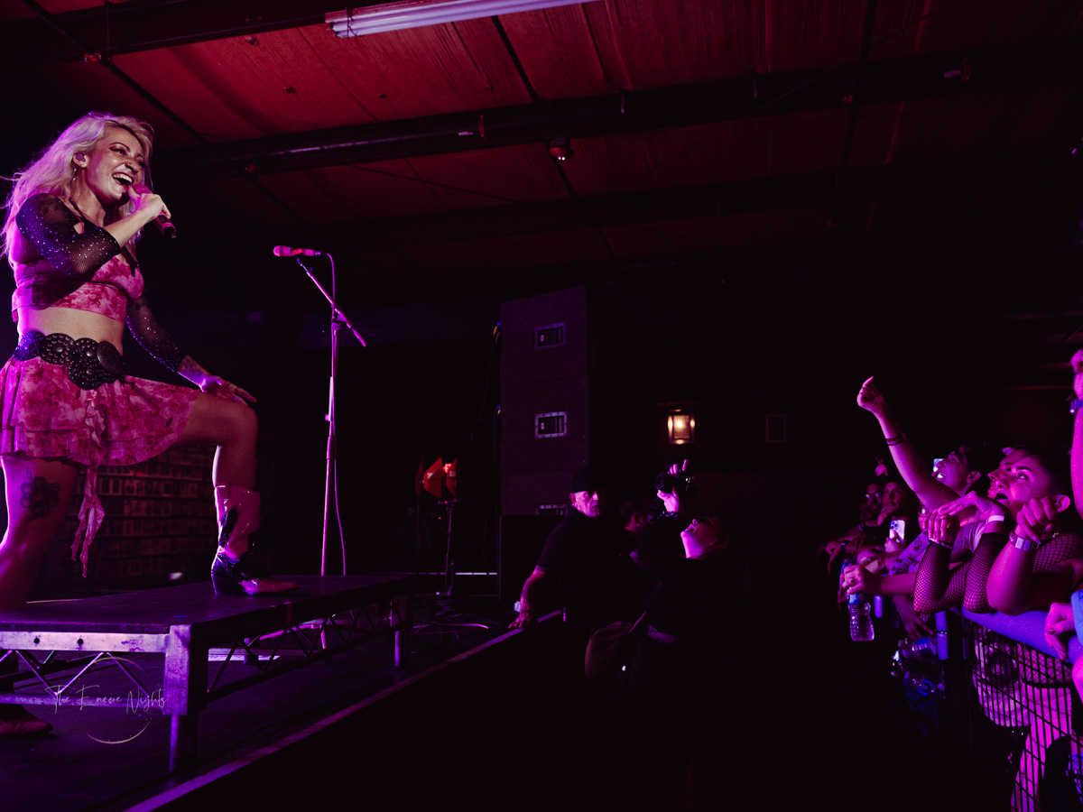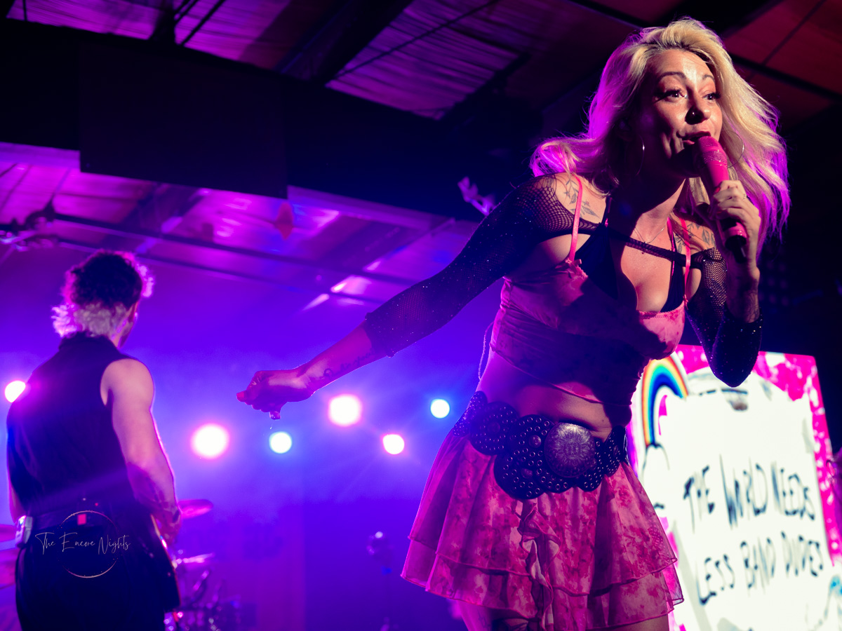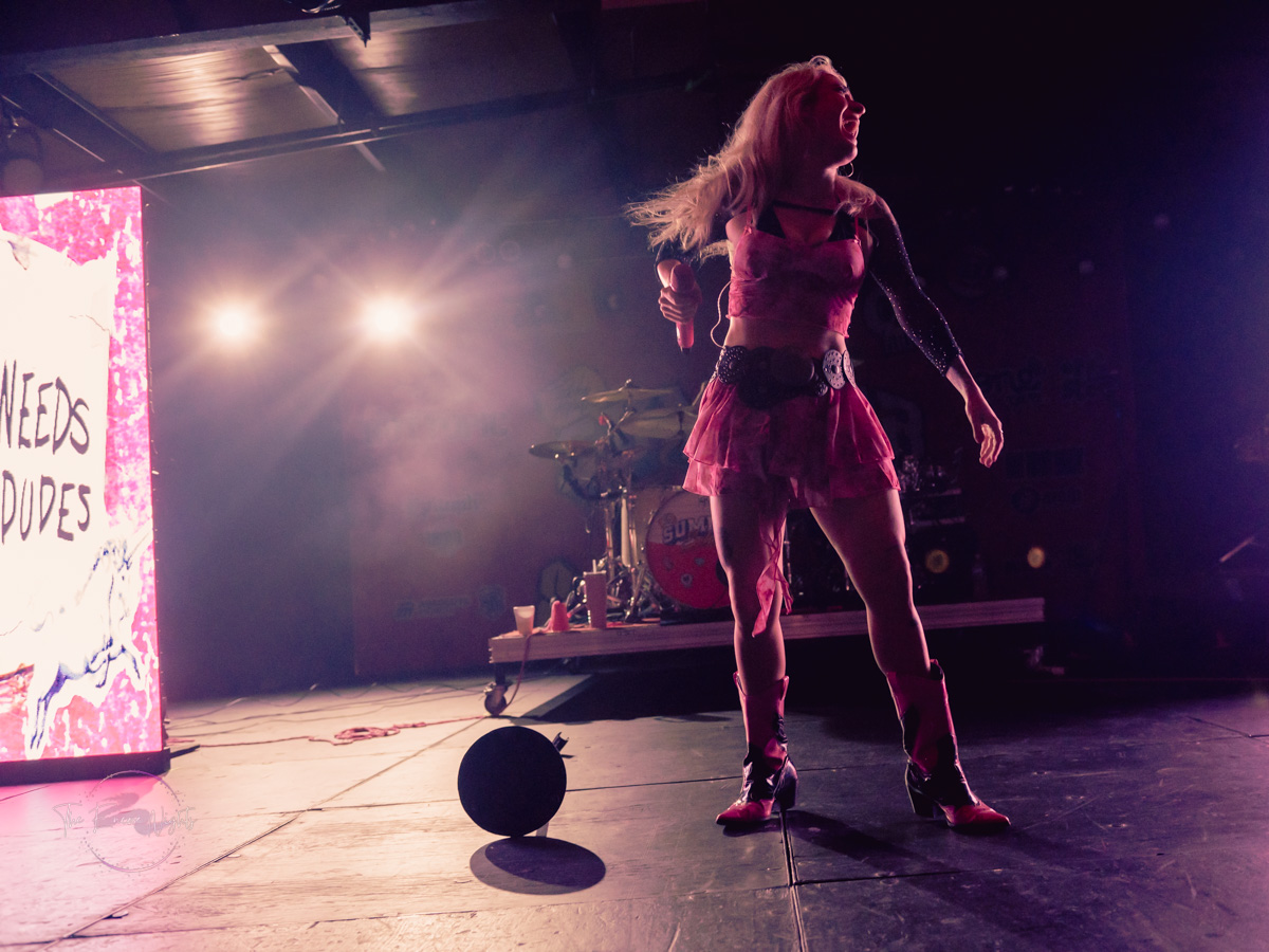 The third headliner to take the stage is likely the most polarizing act on the bill – and also my most anticipated. I’ve been a fan of Scene Queen since before she was performing under that name (and I still have “Are You Tired” in heavy rotation…), and I absolutely love her zero-fucks-given attitude towards making music that can go from ass-shaking in the “twerkle pit” to headbanging and speaking out against misogyny to line-dancing about sex and everything in between. This show marked Scene Queen’s first show in OK, and she was ready to “put the hoe in Oklahoma”, as she so proudly declared. The set kicked off with a very high energy trio from June’s Hot Singles in Your Area in “Pink Push-Up Bra,” “18+,” and “Whips and Chains” before throwing it back to Bimbocore with “Pink Paper”. The latter of which was a very fitting selection because there were definitely some…substances… lingering in the air by that point in the night. Her set felt like it flew by, and the room could not stop dancing. She also brought out her boyfriend Joey Fleming of In Her Own Words, to duet “Barbie and Ken” before closing with the very gay “Pink Panther” and her anti-catcalling anthem “Pink Rover.” I had been waiting over 2 years to finally see Scene Queen live, and it was everything I could have hoped for and more!