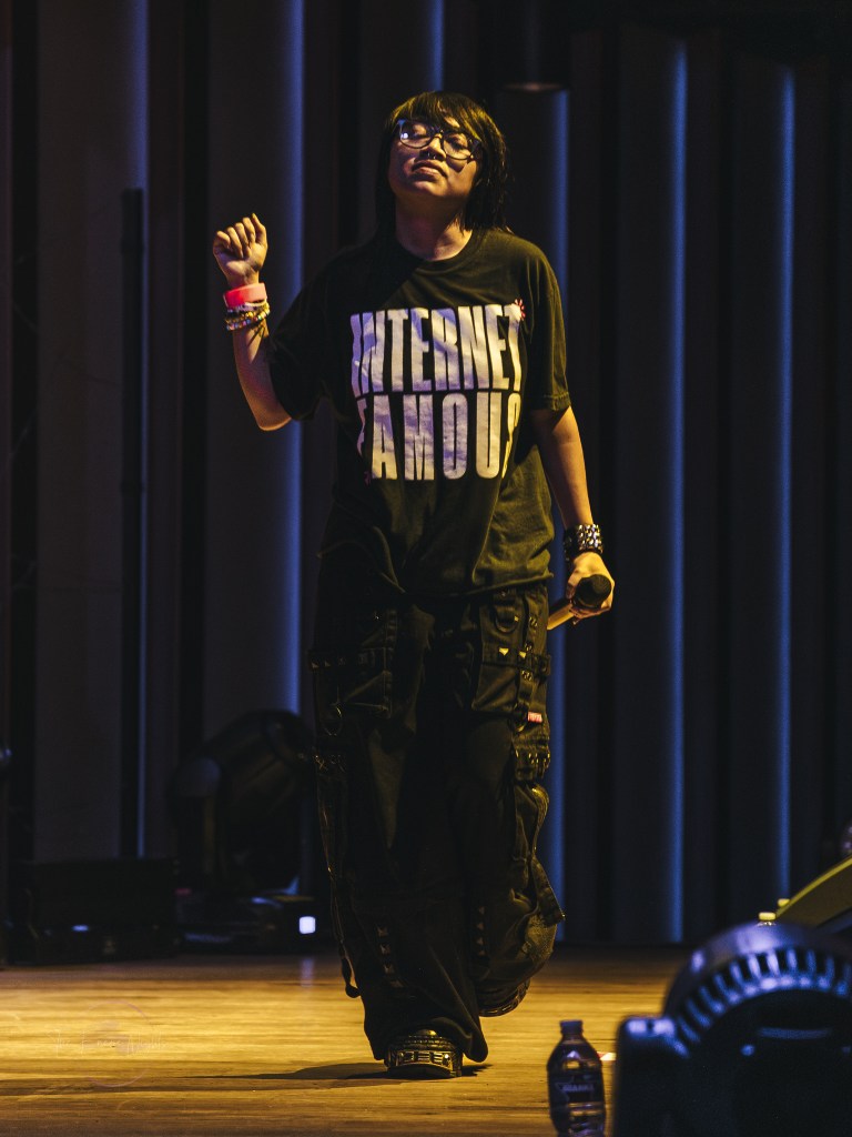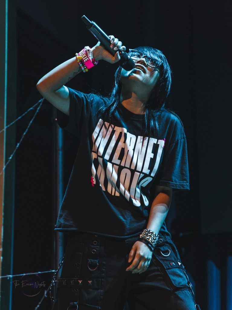 Before the main event of the evening, electronic artist Suicidal -Idol took the stage to get the crowd hyped. Taking musical influences from the rave and scene genres of the early 2000’s but with a modern twist, it was hard to not dance along as she bounced around on stage song after song. Capping off the end of her set with her Tiktok viral hit ‘ecstacy’, her bubbly personality was infectious to say the least as she jumped along with the crowd one last time.