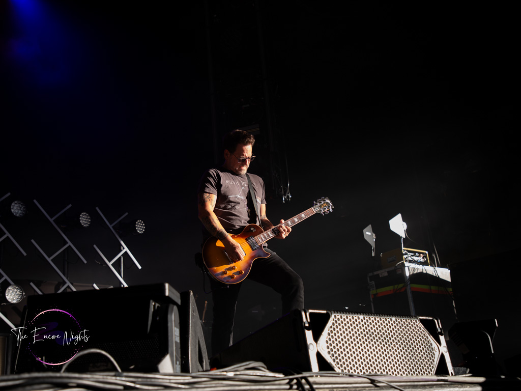 Finally the moment that everyone had been waiting for Bush took center stage and opened their set with “Everything Zen”. Bush is made up of lead singer Gavin Rossdale, lead guitarist Chris Traynor, bassist Corey Britz, and drummer Nik Hughes. Bush is a band that is full of energy that makes it impossible to stay seated. Throughout the night Gavin never stopped moving on stage. During “Flowers On A Grave”, Gavin ran through the whole venue including the lawn part to say hi and hug a few lucky fans. As he was making his way through the venue the crowd hyped him up while the rest of the band played long solo parts allowing him to make it back to the stage and finish the song.