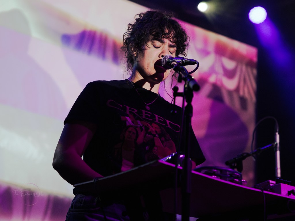 It’s safe to say that watching Kassie Kurt was an experience all on its own. The contrast of the heavy industrial beats and Kurt’s soft voice, all shrouded under low lights created an eerie vibe that had the audience hooked. Her fellow bandmates donning sunglasses to add a layer of mystery while Kurt effortlessly mixed their tracks made for a great opening set, setting the bar for the rest of the night.
