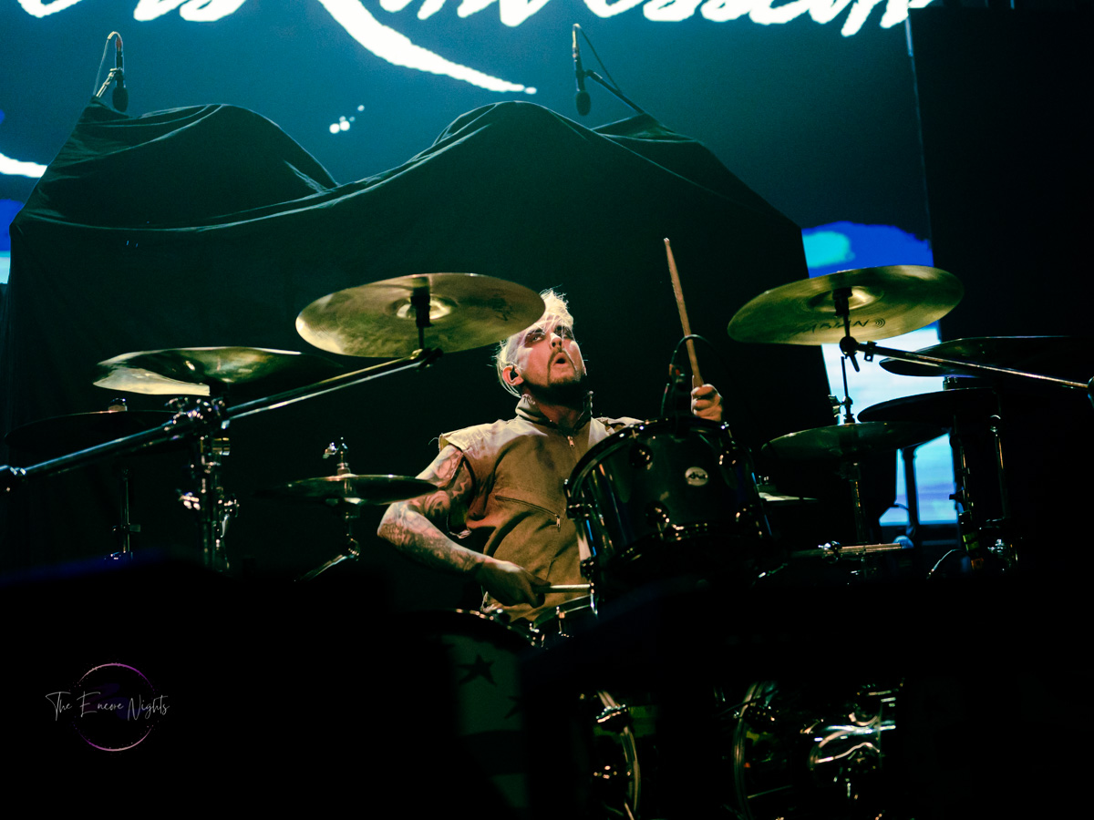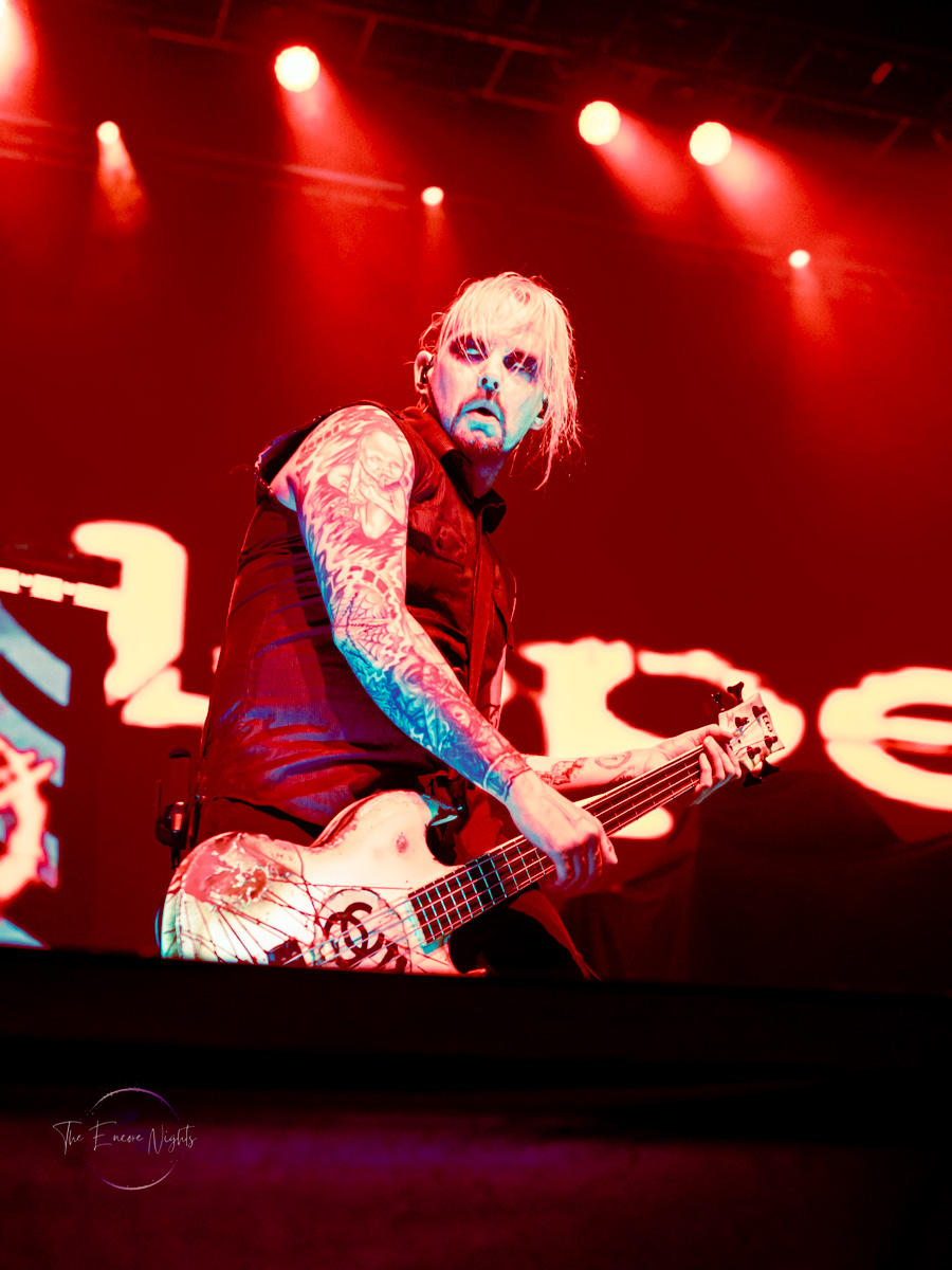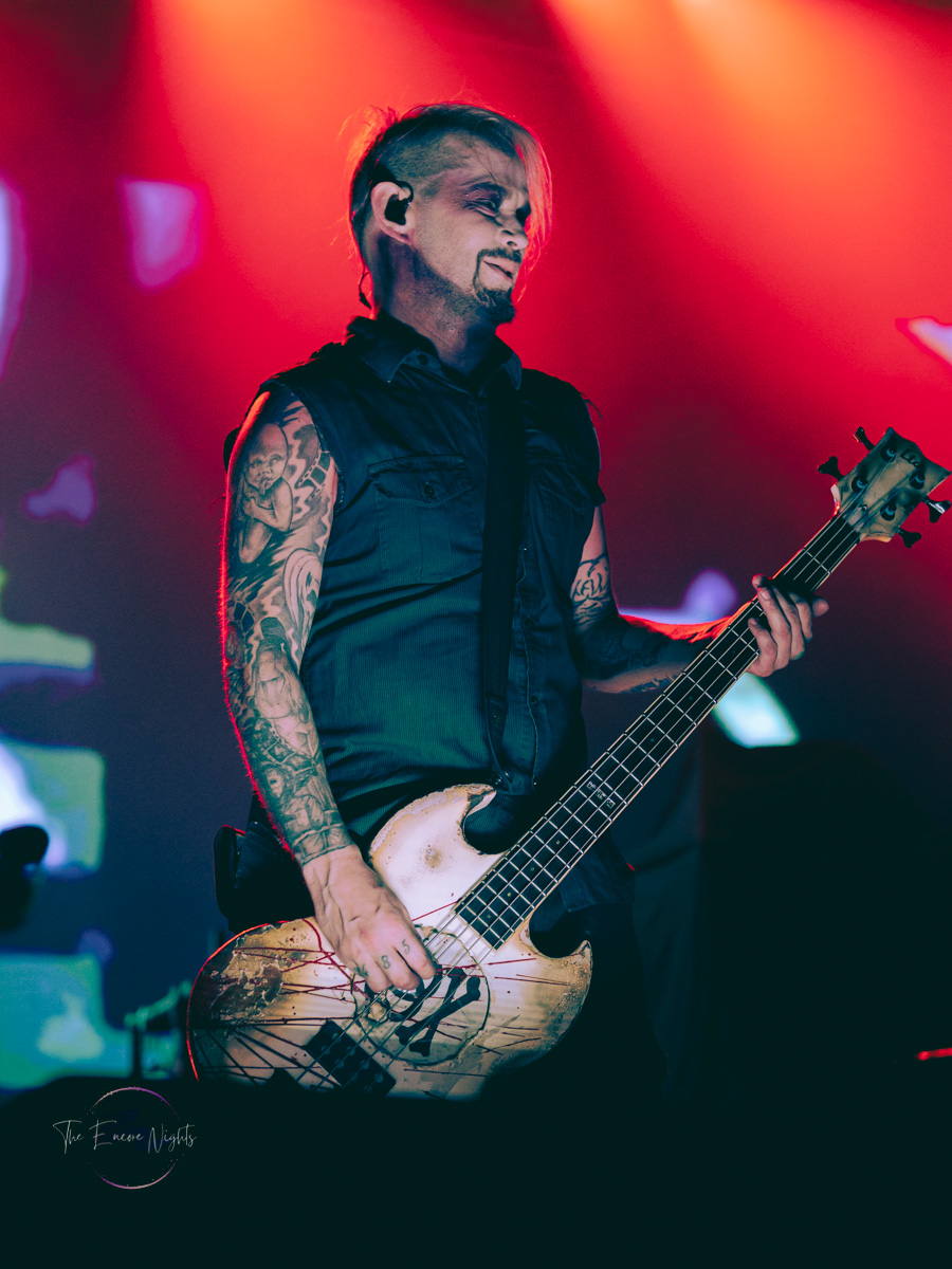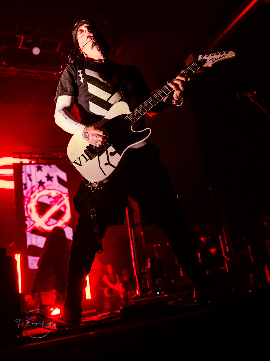 Next to take the stage was fellow industrial metal/hard rock act Dope, who came out firing on all cylinders as they launched into “Blood Money” followed by “Bring it On” and “Bitch”. Dope is a band that will always have a special place in my heart because my dad introduced me to their music, and their live sets are always excellently filled with rage, especially during the ever-so-angsty “Die MF Die”, and they put on what I would argue to be one of the best sets of the night, despite its brevity.
