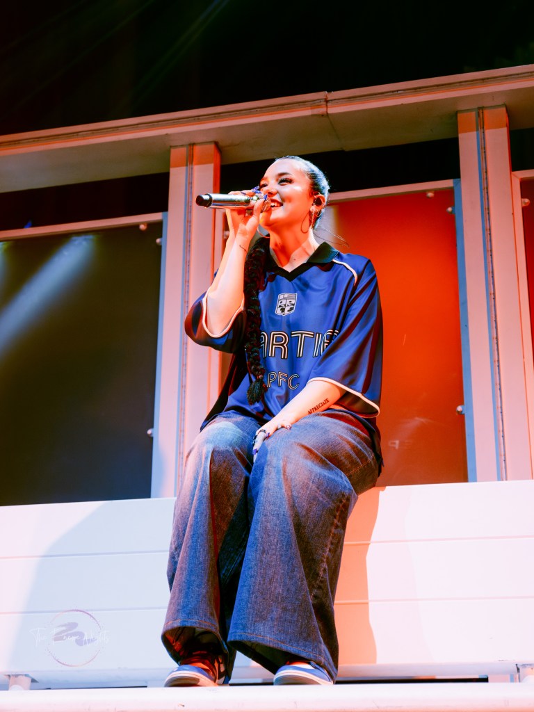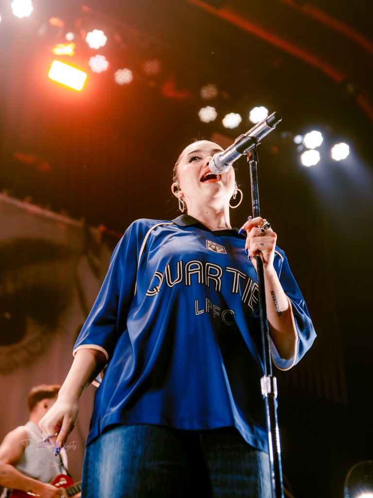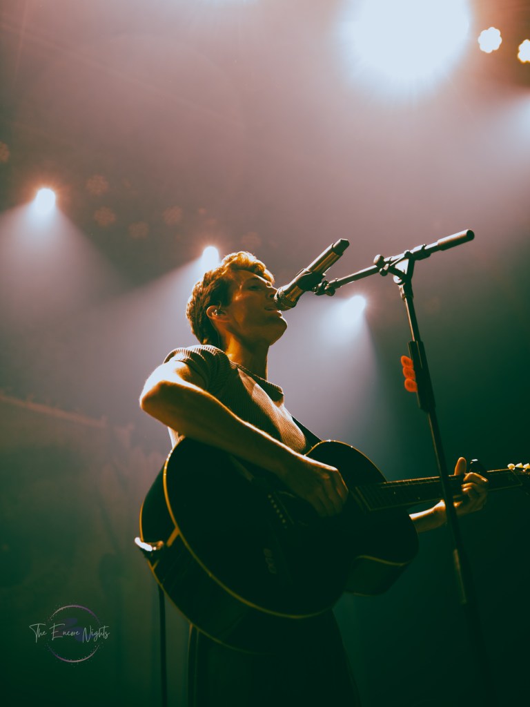 Maisy Kay got the crowd moving with her fun and energetic songs. Her bright energy put a smile on everyone’s faces. Maisy’s blue sparkly fairy-core outfit shined on stage when she twirled around. Her set was a great start to the night. Henry Moodie was up next. It was just him and his guitar, and that’s all he needed to get the crowd to sing along. Fans in the front row knew some of his songs like “You Were There for Me” and “Right Person, Wrong Time.” He did a fun segment where an inflatable die was brought out, and it was between 6 artists to cover. The artist he covered was Adele, and he sang “Someone Like You.” Henry’s heartfelt songs got everyone in the mood for Lauren.