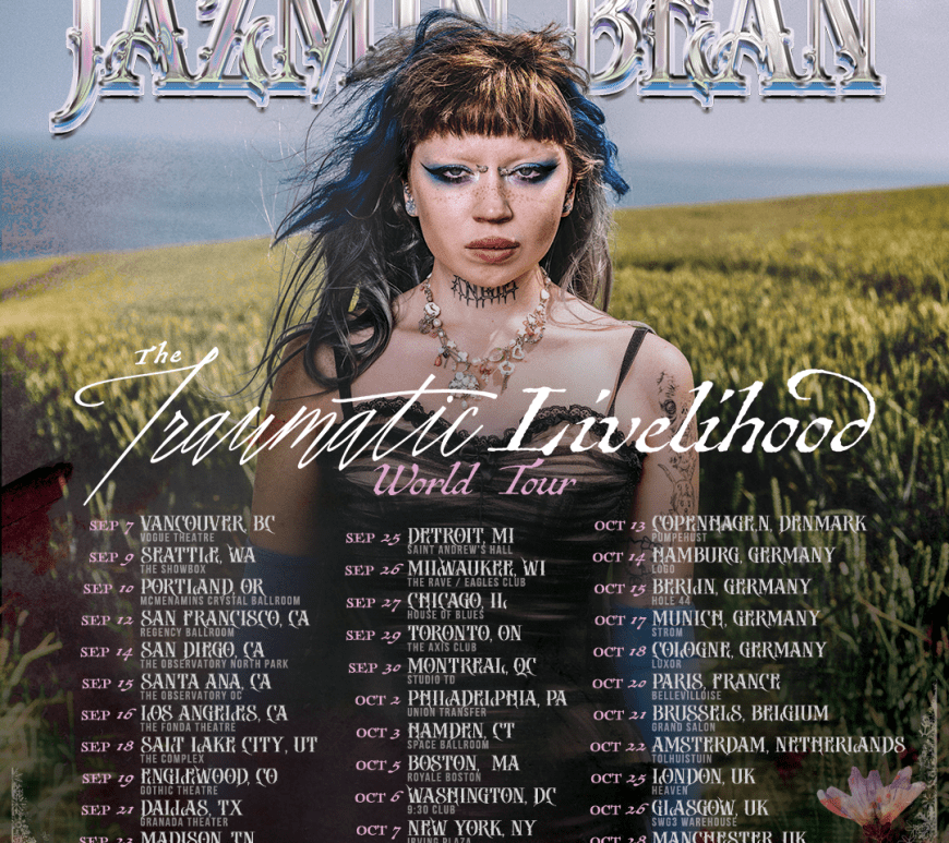 Jazmin Bean The Traumatic Livelihood World Tour After traveling across Europe, the UK, Canada, and the US late last year ahead of the release of their debut album, Jazmin Bean is hitting road once again on The Traumatic Livelihood World Tour. Playing songs from there newest release Traumatic Livelihood and potentially other viral hits such as “Hello Kitty” and ‘Saccharine”, Bean is sure to put … Continue reading Tour Announcement: Jazmin Bean Presents The Traumatic Livelihood World Tour
