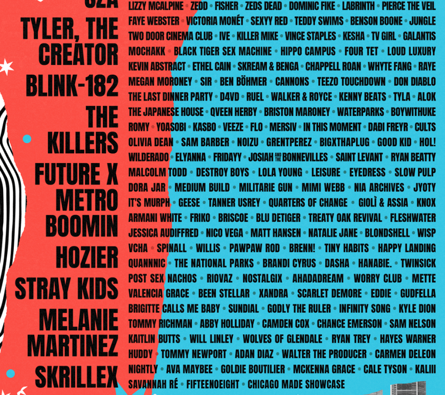 SZA, Tyler, The Creator, blink-182, The Killers, Future X Metro Boomin and more Lollapalooza On March 19, Lollapalooza Festival announced their lineup of 170 artists that will take over the Windy City of Chicago from August 1st through August 4th, 2024. The festival will feature headline sets from Stray Kids, Hozier, SZA, Tyler, The Creator, blink-182, The Killers, Future X Metro Boomin, Melanie Martinez and … Continue reading New Tour Announcement: Lollapalooza