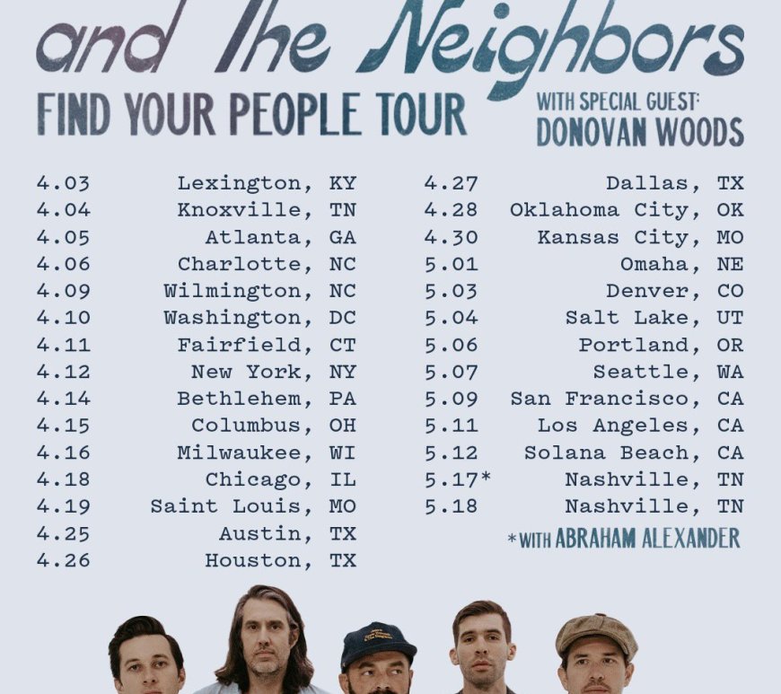Drew Holcomb and the Neighbors, Donovan Woods Find Your People Tour Americana act Drew Holcomb and the Neighbors are hitting the road on their “Find Your People” tour across the US, named for their hit single from 2023’s Strangers No More. The 31-show tour kicked off on April 3 in Lexington, KY, and it will see the group hitting many cities throughout the country, concluding … Continue reading New Tour Announcement: Drew Holcomb and The Neighbors Present the Find Your People Tour
